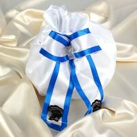 Сумочка невесты атласная, белая с синей окантовкой