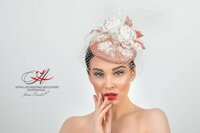 Розовая вечерняя шляпка с цветами и вуалью "Розовый десерт"