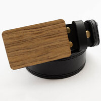 Ремень мужской кожаный для джинс гладкий, черный, с деревянной пряжкой из древесины Сукупира DO