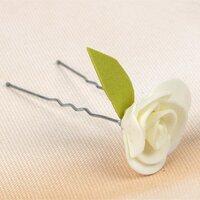 Цветок на шпильке роза 10 шт., с листочком, айвори