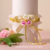 Подвязка для невесты молочного цвета с золотой тесьмой