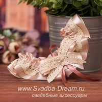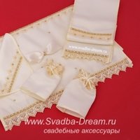Свадебный комплект, декорированный кружевом в золотых тонах