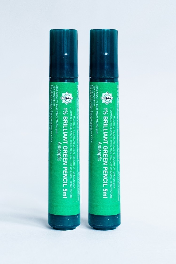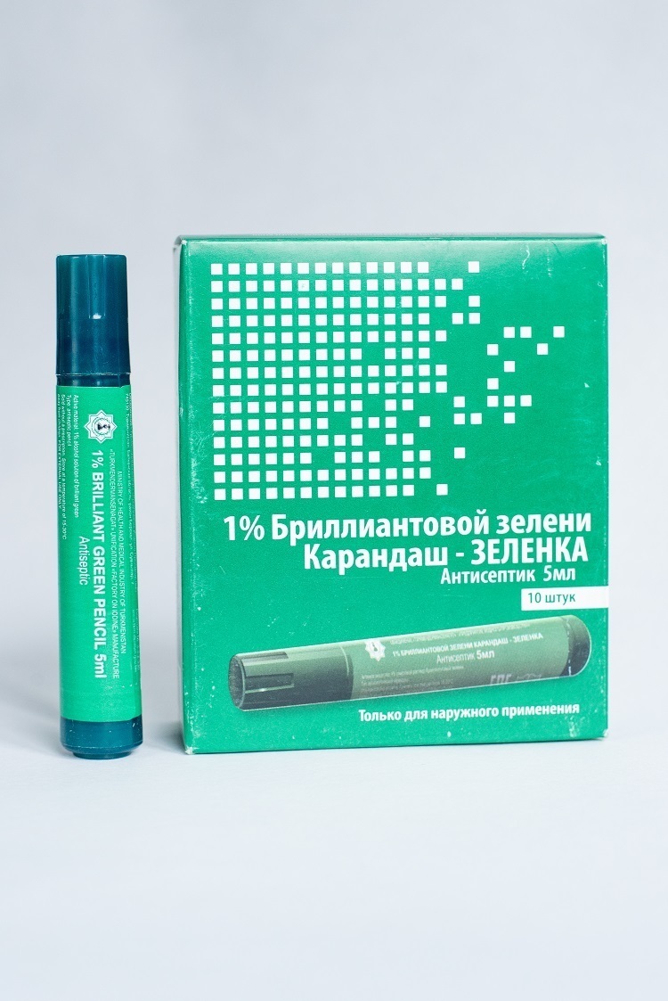 БЕЗ РЕЦЕПТА ВРАЧА. УДОБНАЯ ФОРМА. НЕ ПАЧКАЕТ РУКИ! Зеленка - 2 карандаша по 5 мл (спирт. раствор бриллиант зеленого 1%). 2 карандаша с твердым пористым стержнем для хранения и нанесения спиртового раствора бриллиантового зеленого. Рекомендации к применени