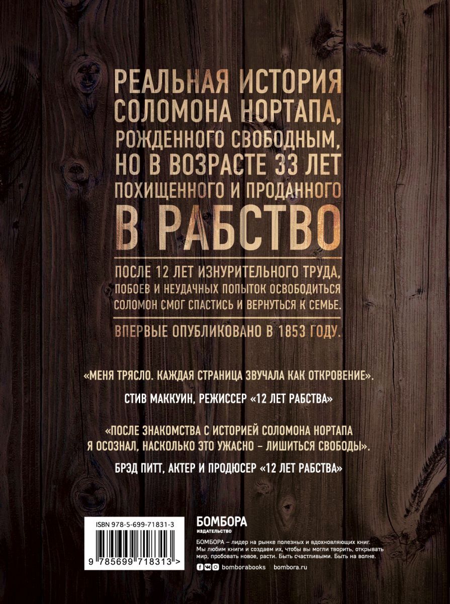 О КНИГЕ«12 лет рабства». Впервые на русском языке легендарная книга, которая вдохновила Голливуд. Оскар-2014 за лучший фильм года. «12 лет рабства» – это поразительная история Соломона Нортапа, рожденного свободным, но в возрасте 33 лет похищенного и прод