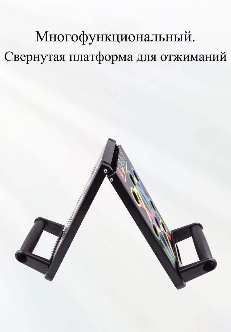 Вы по достоинству оцените его форму! Это универсальная доска для упражнений с упорами для отжиманий, размеченная в соответствии со специальной системой упражнений для различных групп мышц и областей туловища - плеч, спины, рук, груди. Он выдерживает интен