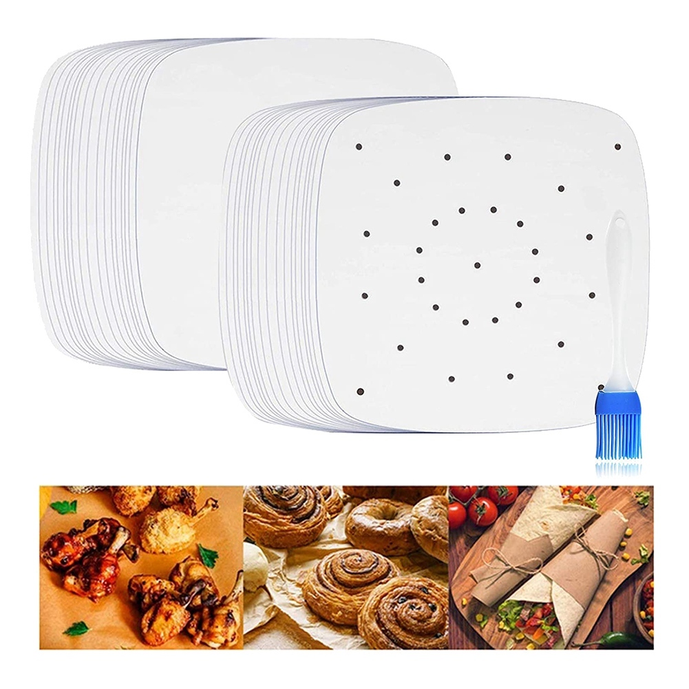 Партномер100 листов перфорированной бумаги для выпечки,50 листов непористой бумаги для выпечки,1 масляная кисть (случайный цвет, не принимайте указанный цвет)