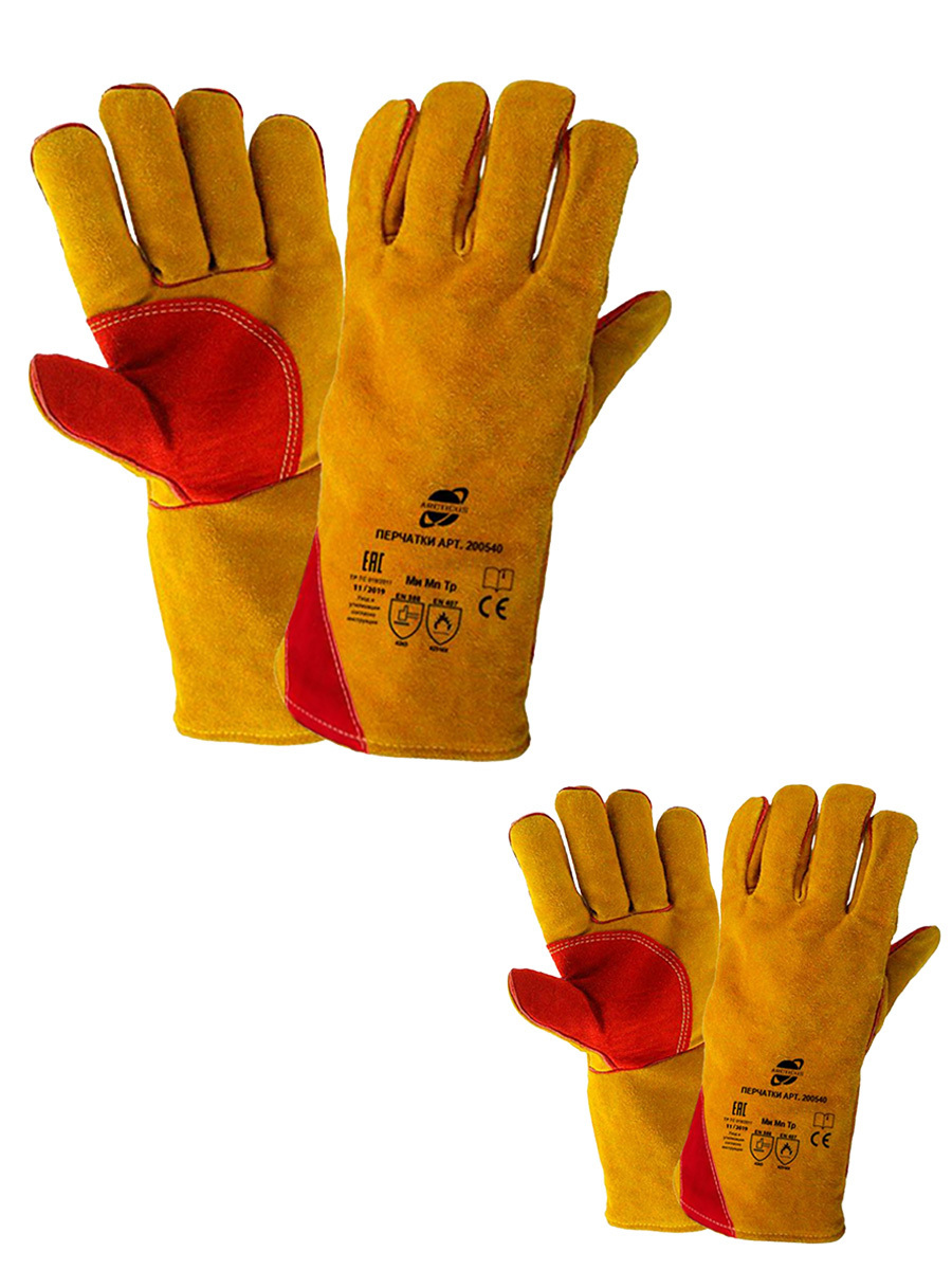 Arcticus 200540 - краги сварщика пятипалые с дополнительным усилением ладони и большого пальца. Изготовлены из бычьего спилка толщиной 1,2 - 1,4 мм класса А желтого цвета, прошиты кевларовой нитью. Двойные швы. Длина 35 см. Подкладка: в кистевой части вып