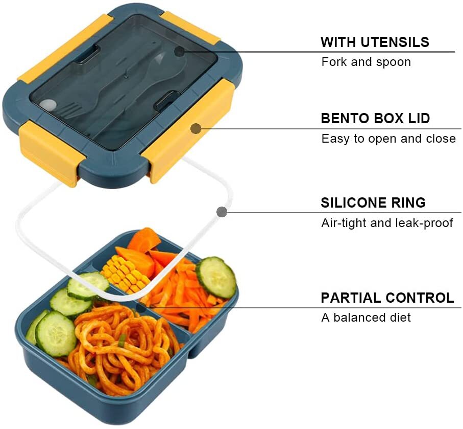 [Встроенный частичный контроль]: наш ящик для бенто имеет 3 отделения. В большое отделение можно положить макароны, вторые блюда, суши и бутерброды. Два отделения подходят для фруктовых закусок, салатов и любых блюд, которые вам нравятся.[Безопасность и з