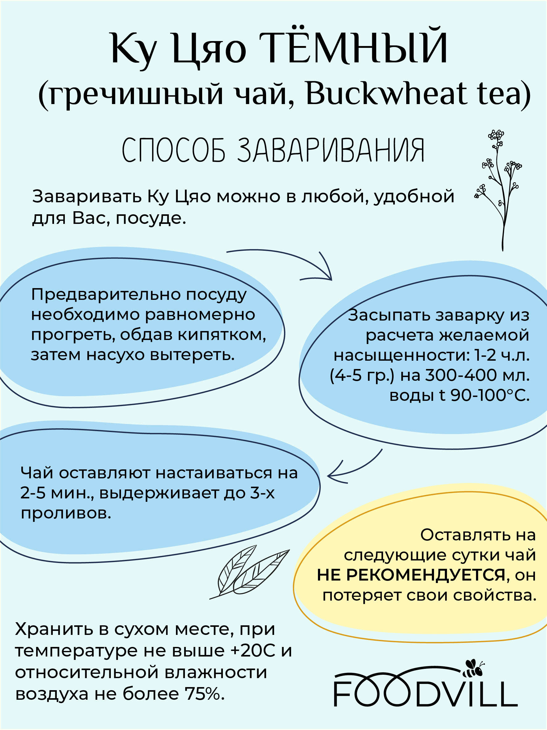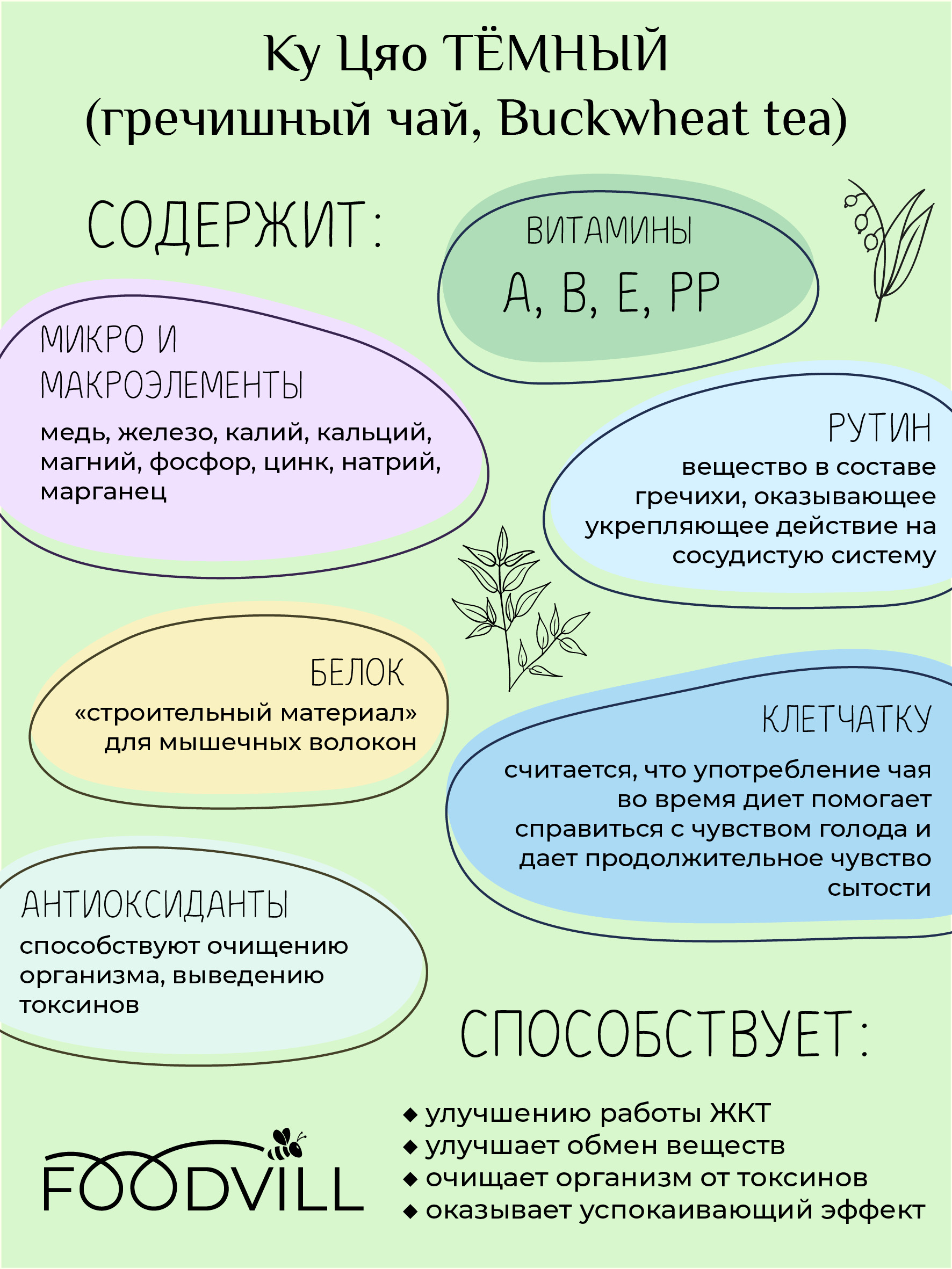 Гречишный чай Ку Цяо - это чайный напиток, который делают из семян татарской черной гречихи.Это не обычная гречка, а специальная "горькая", татарская чёрная гречиха, культура, которая произрастает в Китае и Тайване.Отличается от известной всем гречки иным
