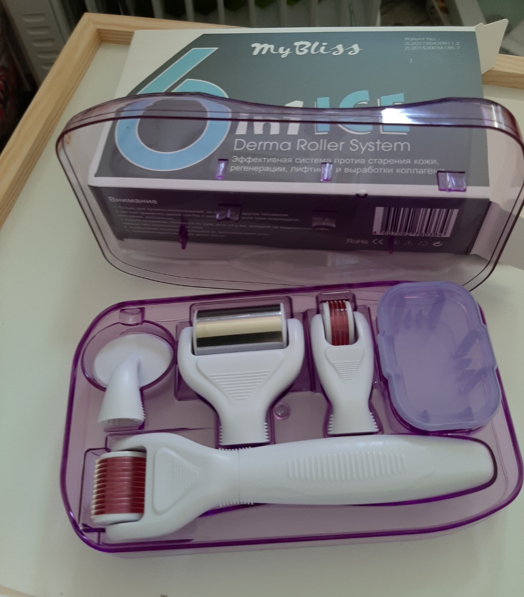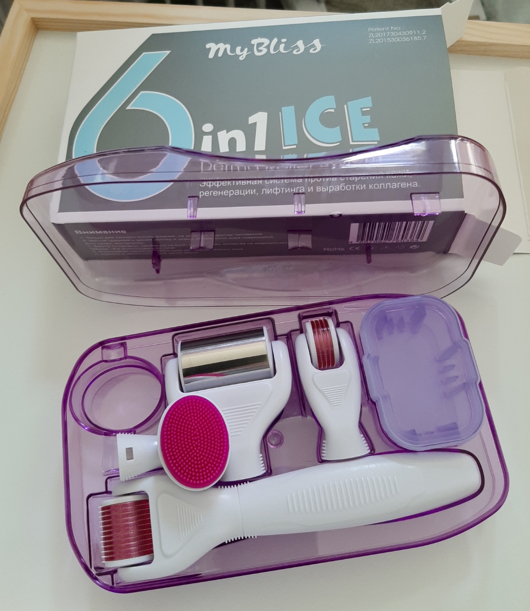 Комплектация:В комплекте находятся различные насадки в том числе и силиконовая щеточка для очищения лица , контейнер для дезинфекции, охлаждающий ролик, насадки с различной длиной игл. Размер игл от 0,5 до 1,5 мм.Описание:Мезороллер 6 в 1 набор с охлаждаю