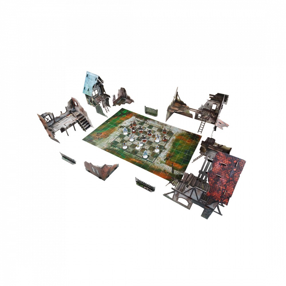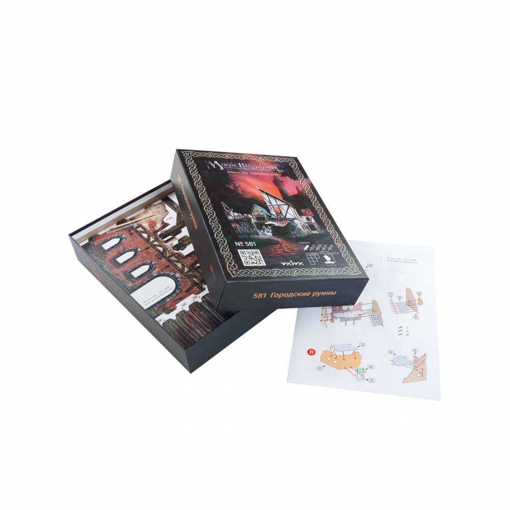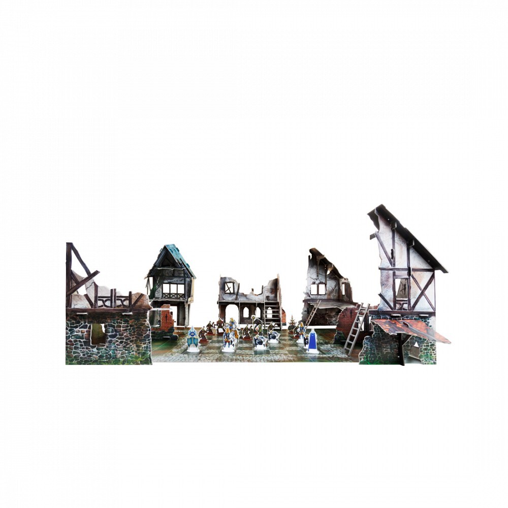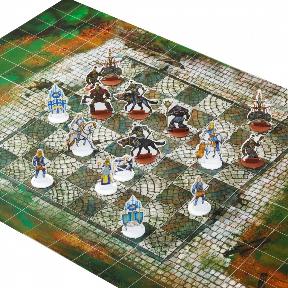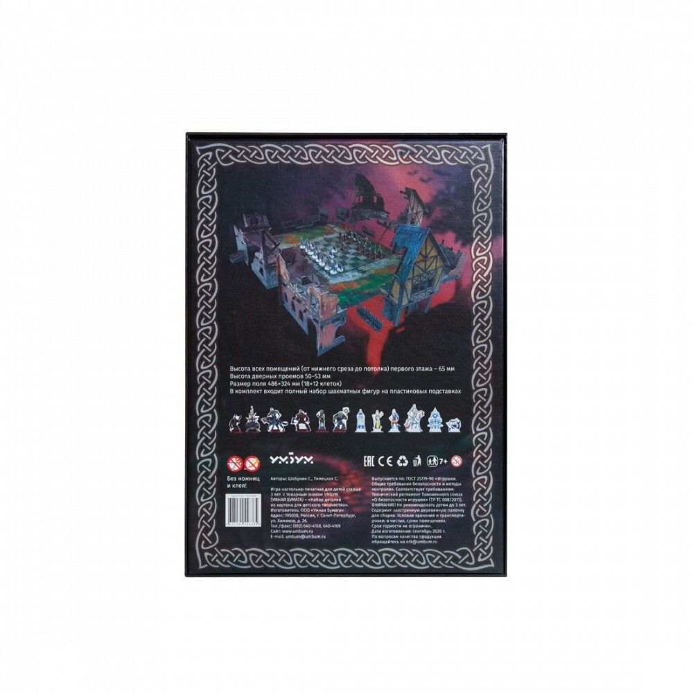 Высота всех помещений первого этажа - 65 мм, размер дверных проемов - 50-53 мм. Размер поля 486*324 мм (18*12 клеток). В комплект входит полный набор шахматных фигур на пластиковых подставках.
