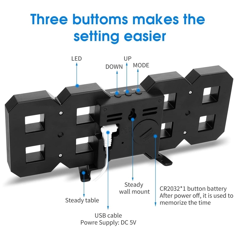 3D светодиодные настенные часы, цифровые настенные часы, цифровые часы, 3D светодиодный будильник с 3 регулируемой яркостью Синий цифровой