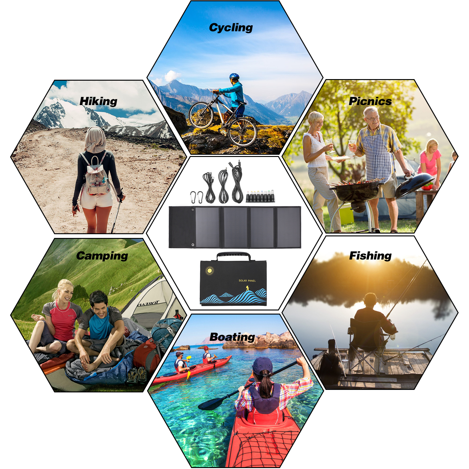 Функции:Простой и экологичный: он преобразует солнечное излучение в электрическую энергию, поглощая солнечный свет, а затем вы можете заряжать свое личное электронное оборудование, когда вы путешествуете пешком, альпинизм, кемпинг, пикник и т. Д.Солнечная