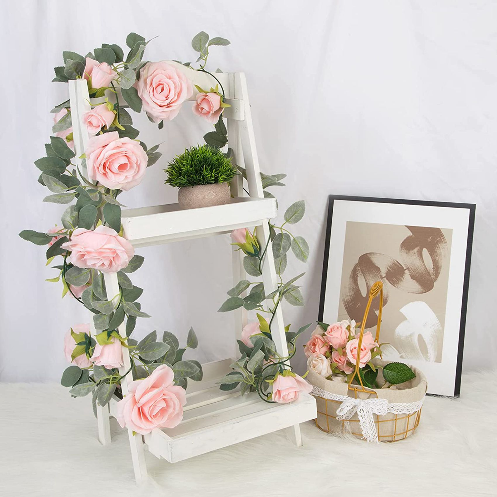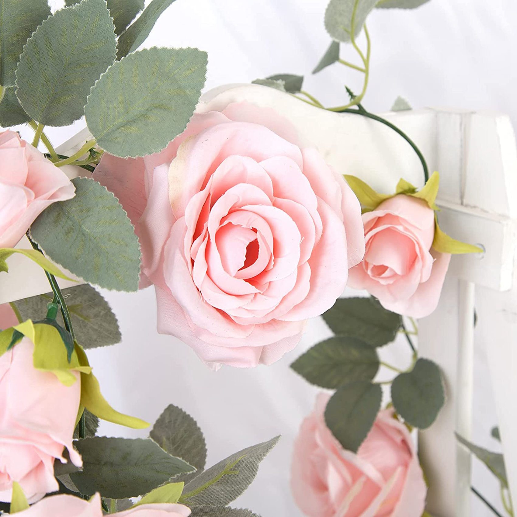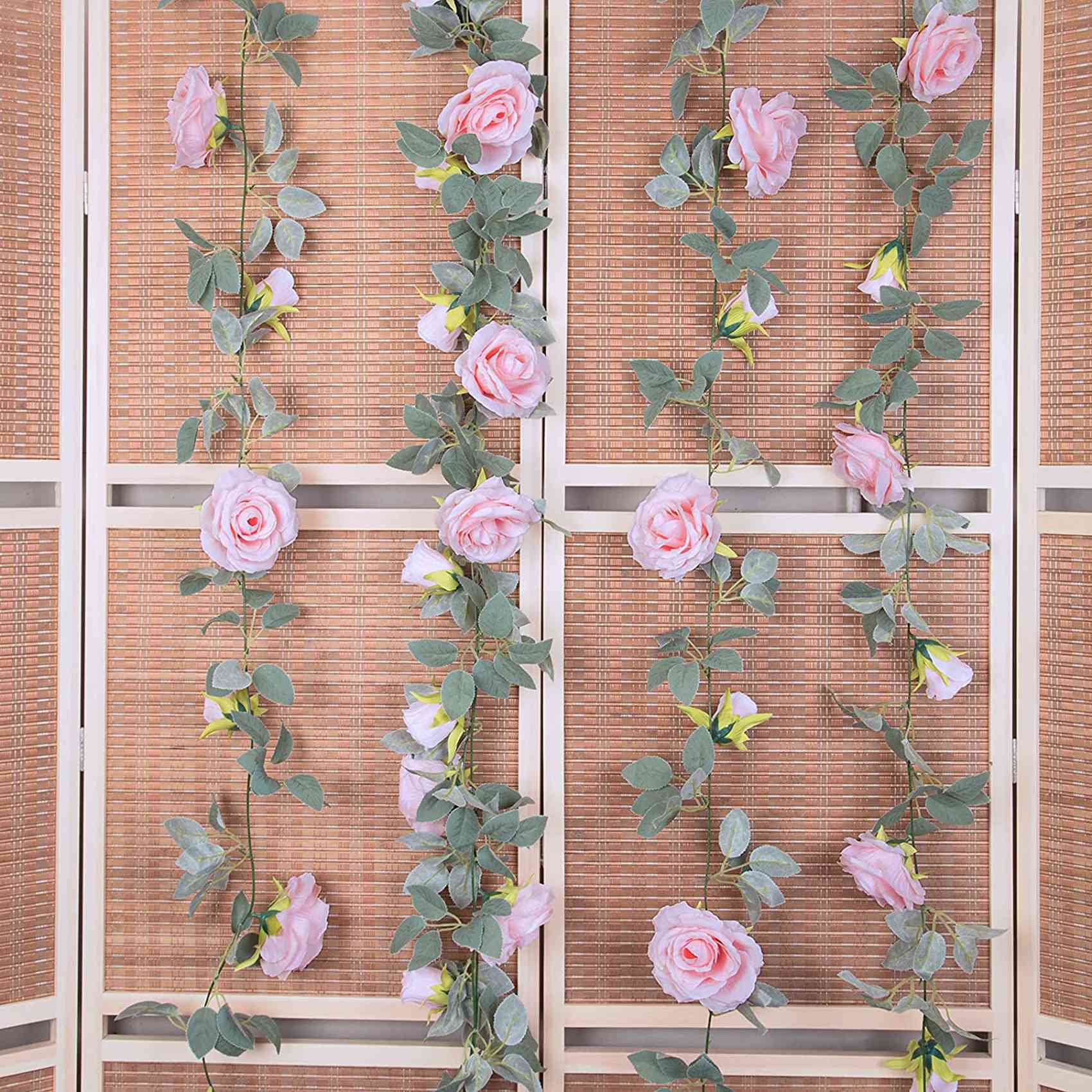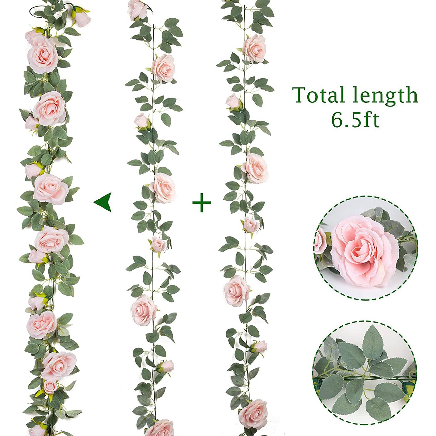 4 упаковки гирлянды из розовых роз. Каждая гирлянда состоит из 9 розовых роз. br [РАЗМЕР] Каждая гирлянда имеет длину 6 5 футов 200 см. На каждой гирлянде 4 розовых розы по 2 2 дюйма и 5 розовых по 4 дюйма. br [МАТЕРИАЛ] Гирлянда из роз изгото