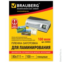 530902 Пленки-заготовки для ламинирования, комплект 100 шт., 80х111 мм, 100 мкм, brauberg