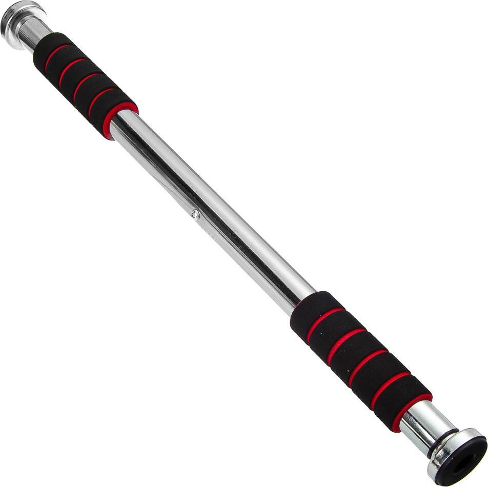 Прочный турник 100 см с мягкими полиэстровыми накладками, обеспечивающими комфортный хват. На концах турника расположены усиленные кронштейны для крепления к дверному проему; максимальный вес пользователя 100 кг; предназначен для тренировки мышц всего пле