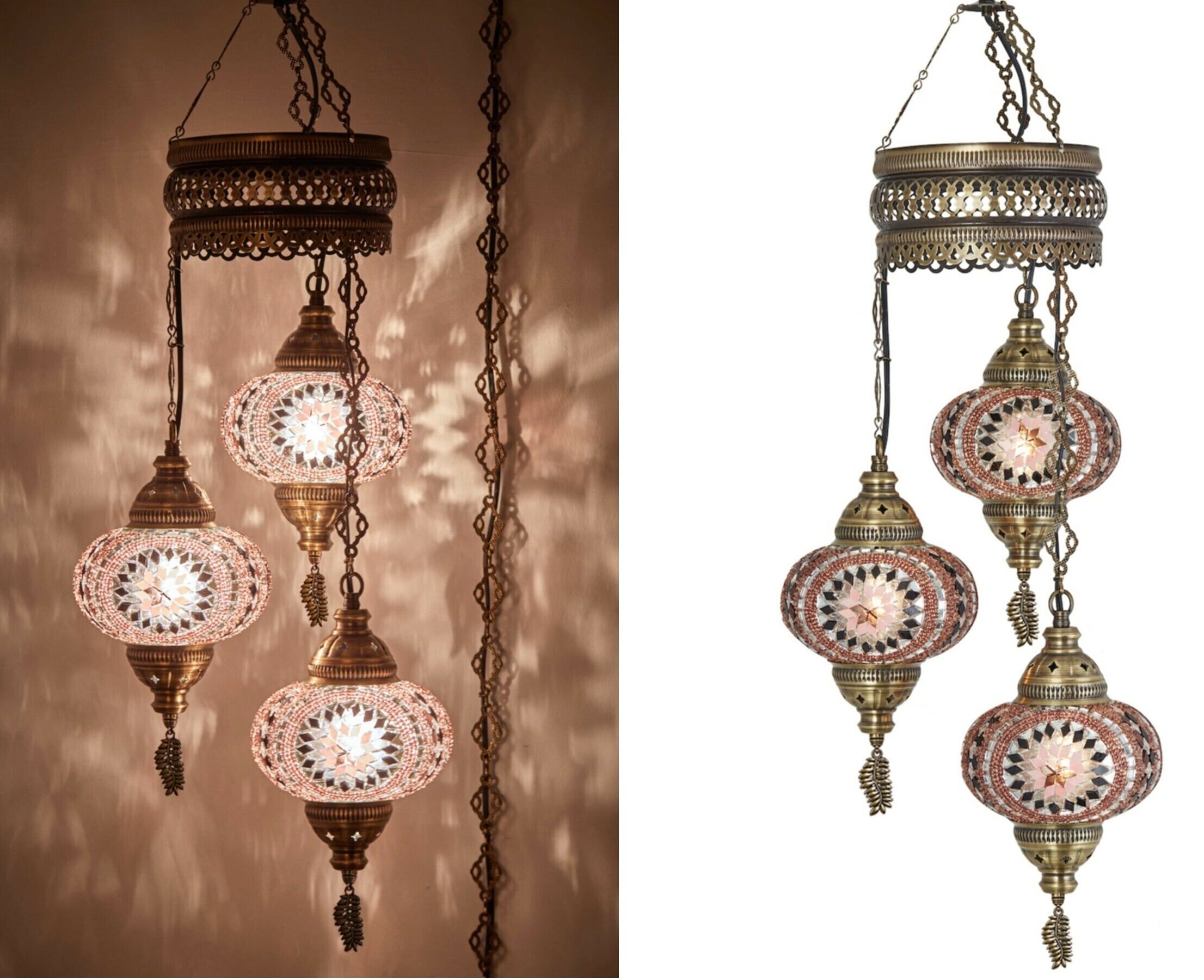 100% СДЕЛАНО ВРУЧНУЮОжерелье с люстрой из мозаики ручной работы, 3 шт.Мозаика Лампа 3 шт. Османская Аутентичная ручная работа из цветного стекла Подвесной светильник Люстра BohoАбажур из мозаики требует много времени и сил.Ремесленники используют красочны