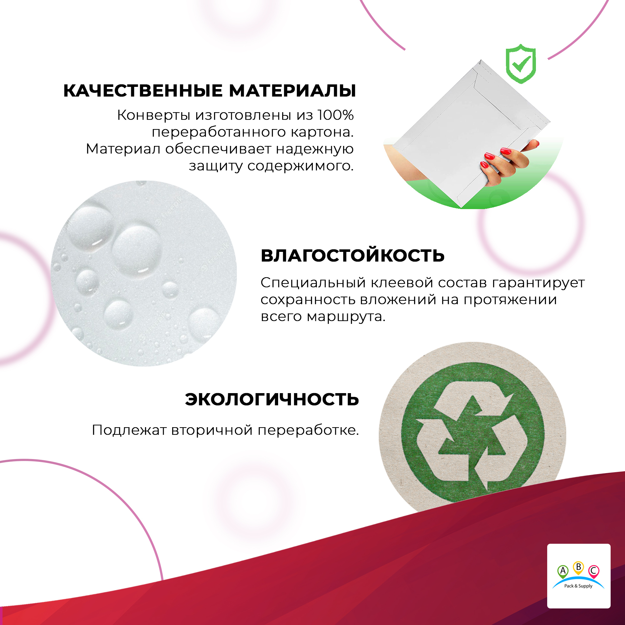 Высокое качество материала, из которого изготовлены картонные курьерские конверты, обеспечивает надежную защиту содержимого, жесткие конверты устойчивы к разрывам и повреждениям. Клеевой клапан защитит содержимое картонного конверта от неправомерного вскр