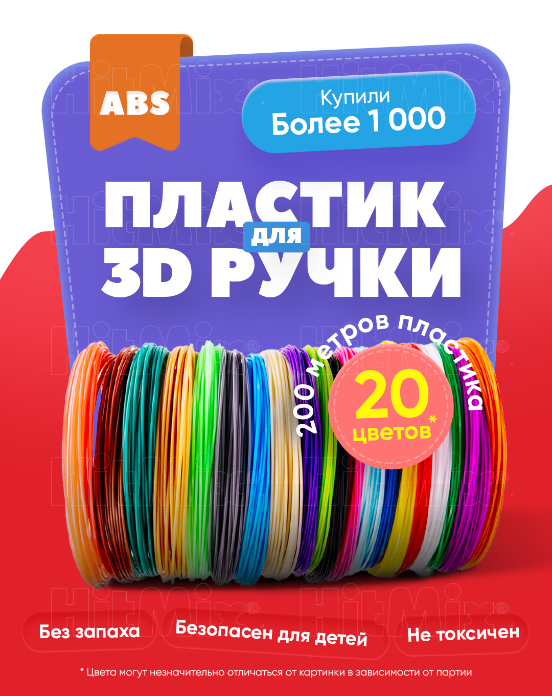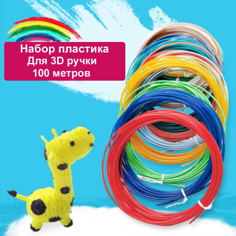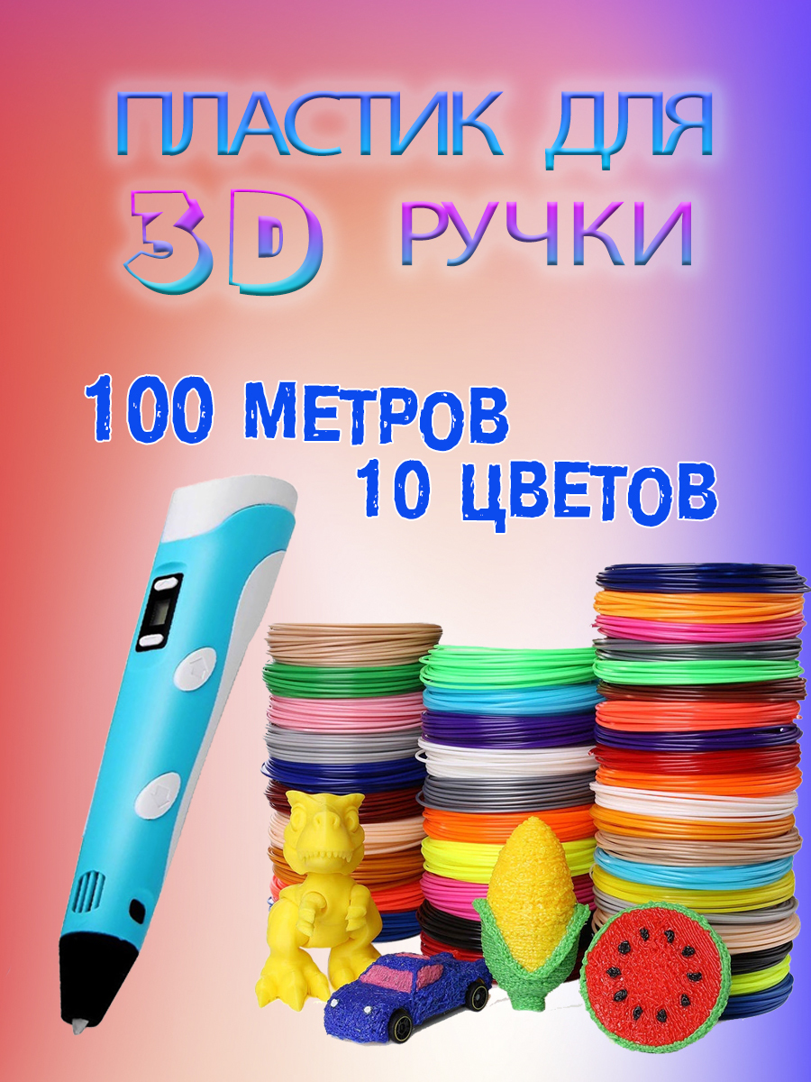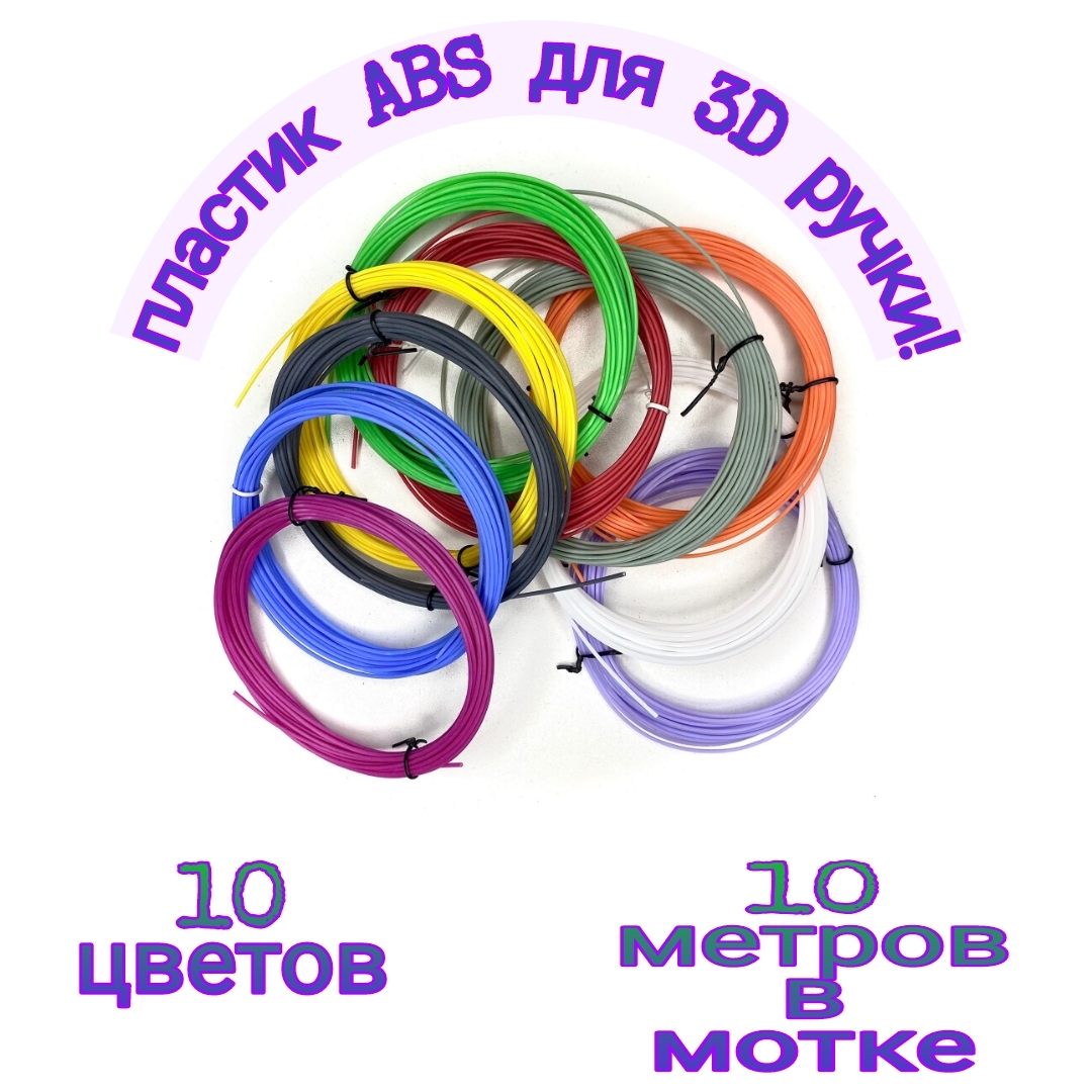 Набор безопасного нетоксичного ABS пластика для 3Д ручки, состоящий из 10 цветов по 10 метров (все цвета радуги). Температура плавления от 180 до 240 градусов. Идеален для работы с 3D Pen-2 и 3D Pen-3. Пластик для 3D ручки представляет собой нить из 1.75м