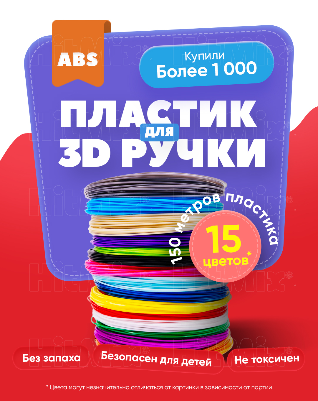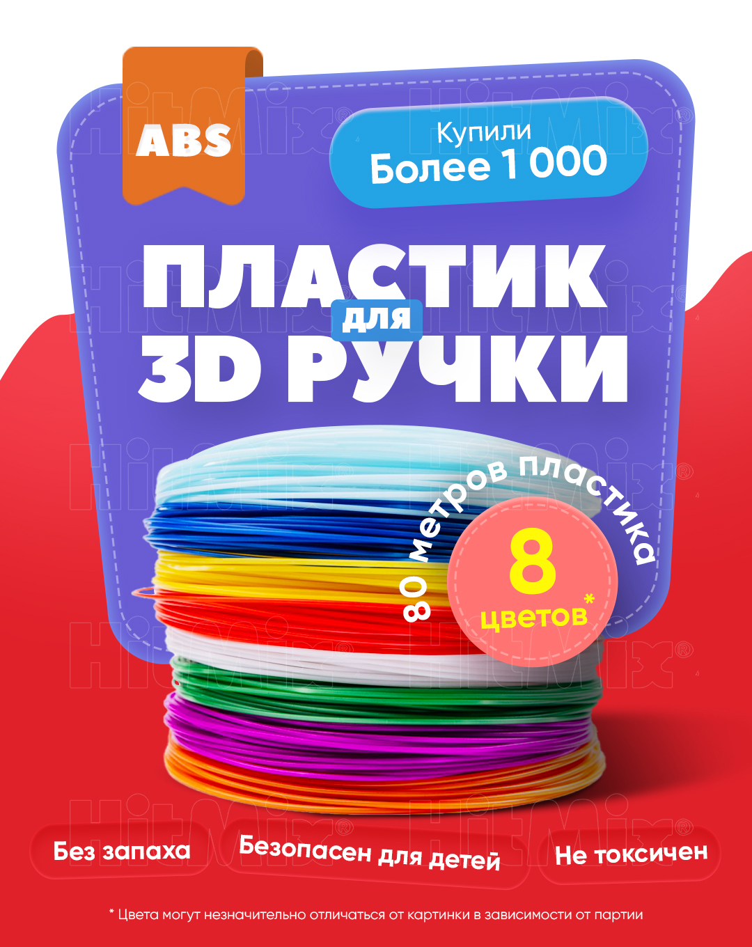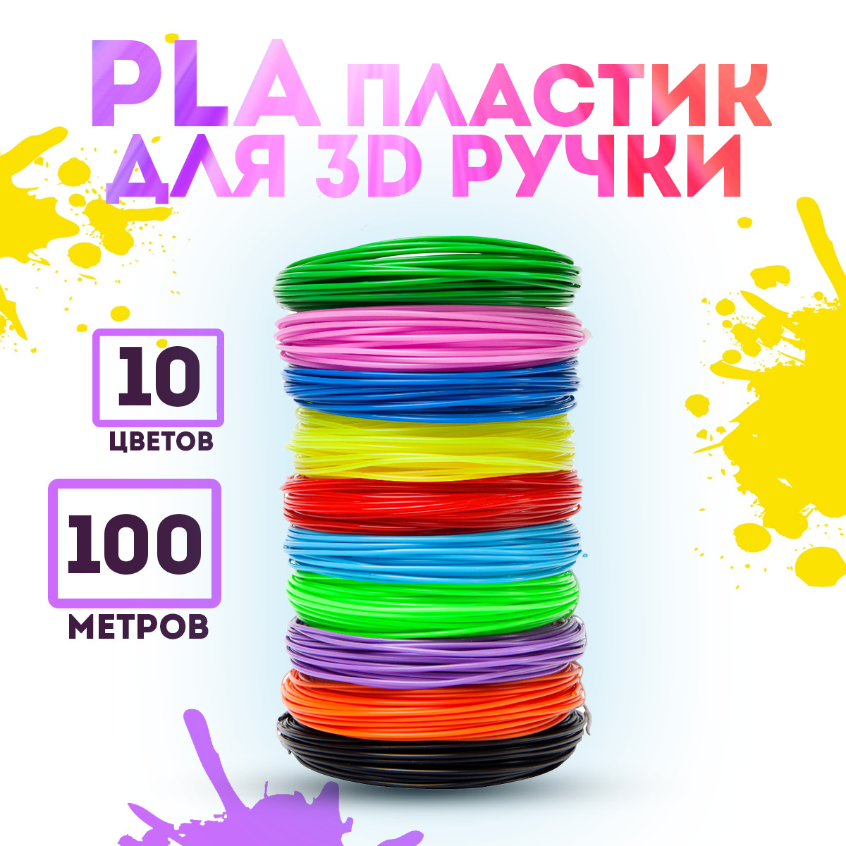 Набор безопасного нетоксичного ABS пластика для 3Д ручки, состоящий из 10 цветов по 10 метров (все цвета радуги). Температура плавления от 180 до 240 градусов. Идеален для работы с 3D Pen-2 и 3D Pen-3. Пластик для 3D ручки представляет собой нить из 1.75м