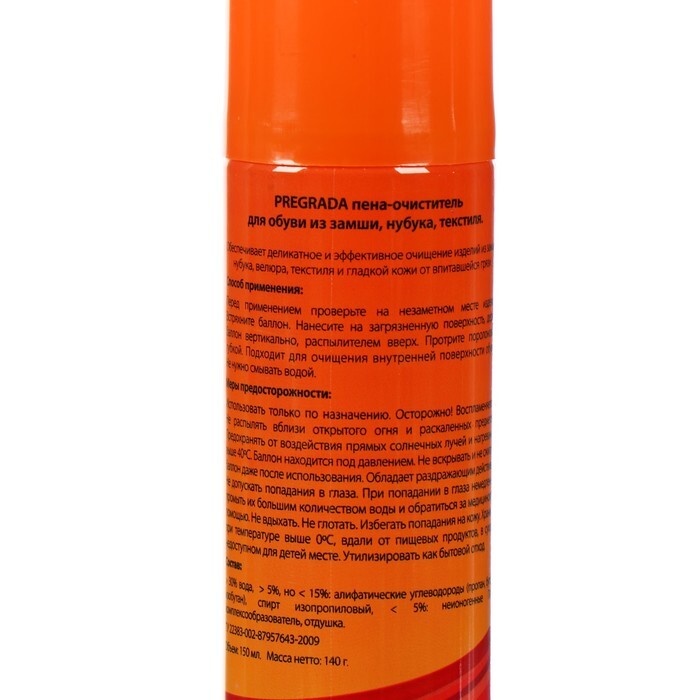Аэрозоль пена -очиститель Pregrada для обуви из кожи, замши, нубука, ткани,150 мл