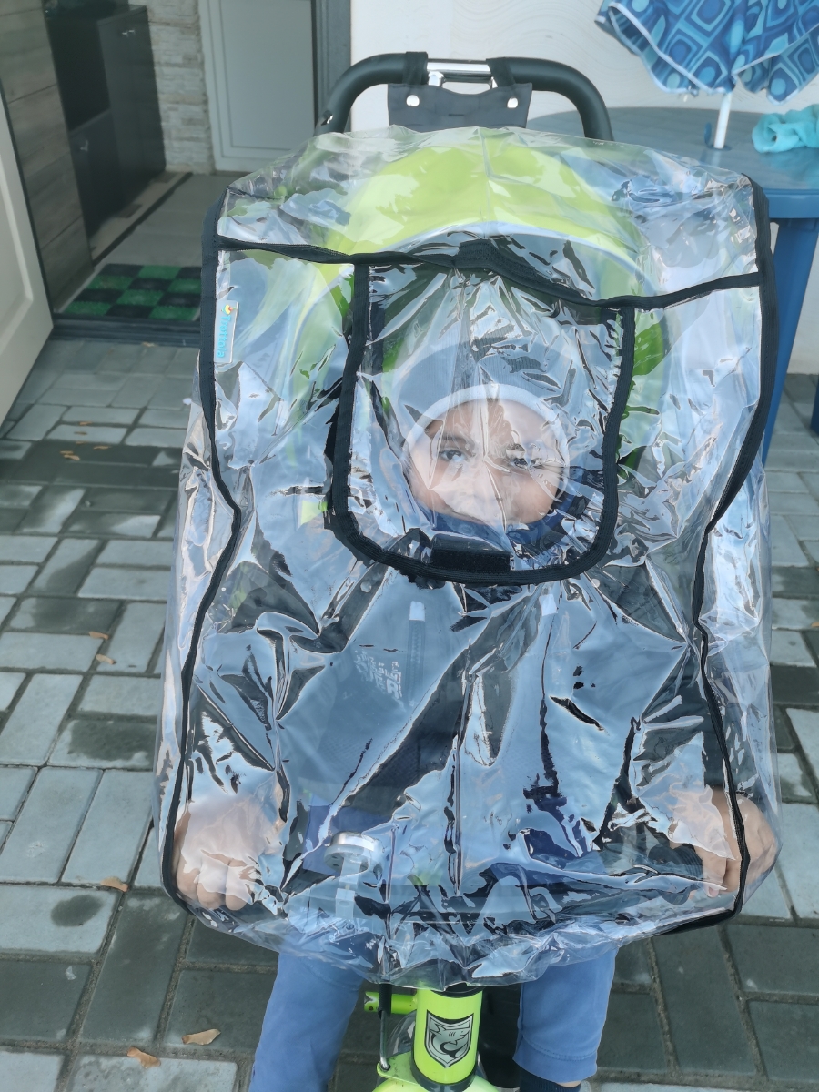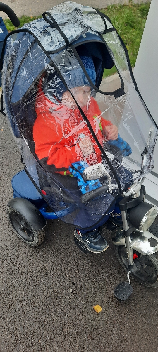 Прозрачный, прочный дождевик из специальной мягкой пленки для детского велосипеда с крышей. Оснащен окном на липучках, которое можно фиксировать в трёх положениях, что позволяет регулировать приток воздуха. Защитит от непогоды во время прогулки.