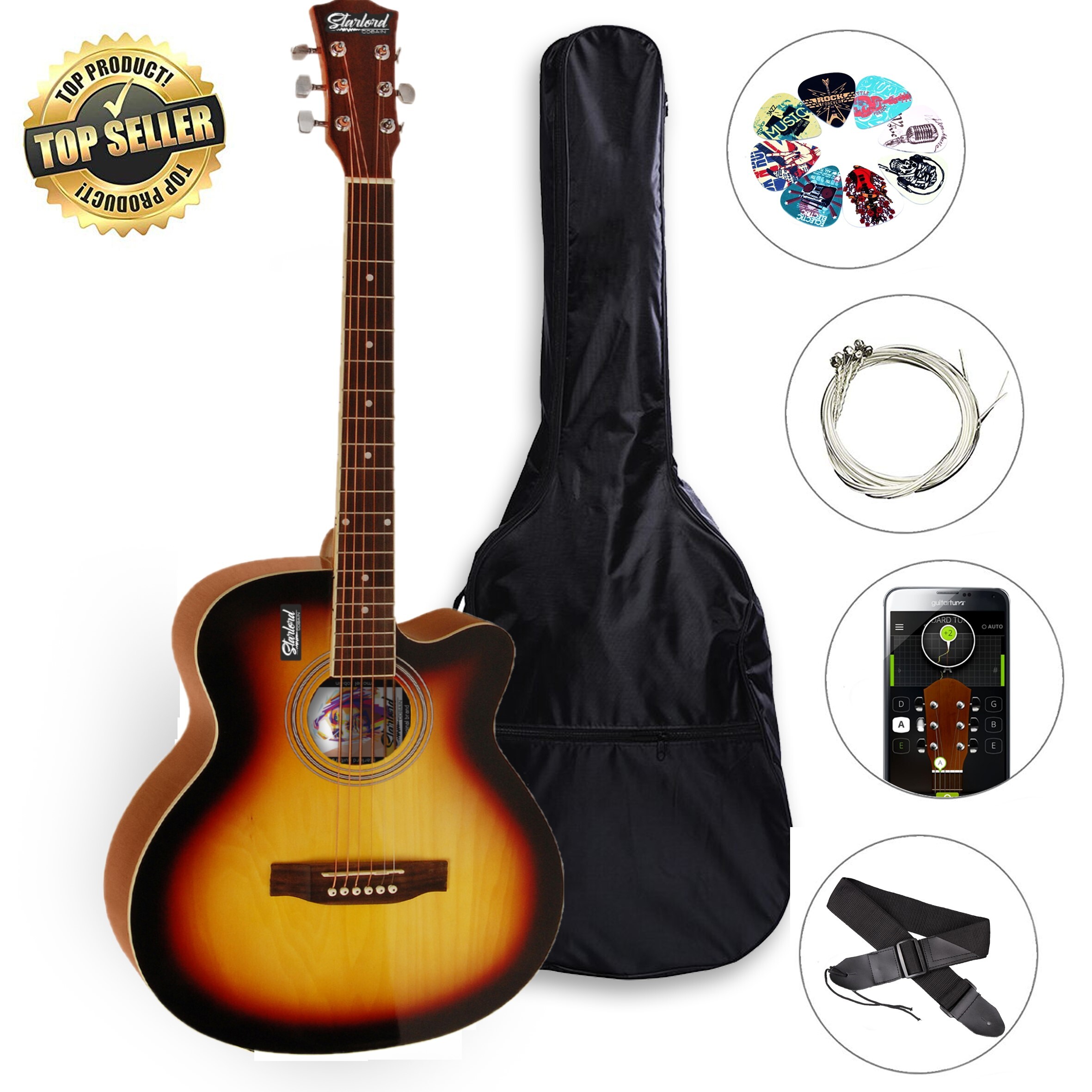Комплектация:- Гитара - Чехол- Дополнительный набор струн- Ремень- Медиатор- Программа для настройки гитары и самоучитель для смартфонаОписание:Полноразмерные акустические гитары Starlord Cobain Black Label '40 - одни из лучших гитар на рынке по соотношен