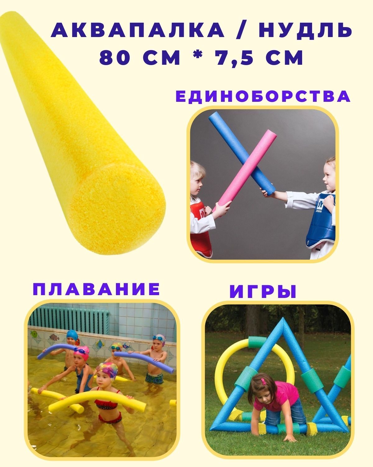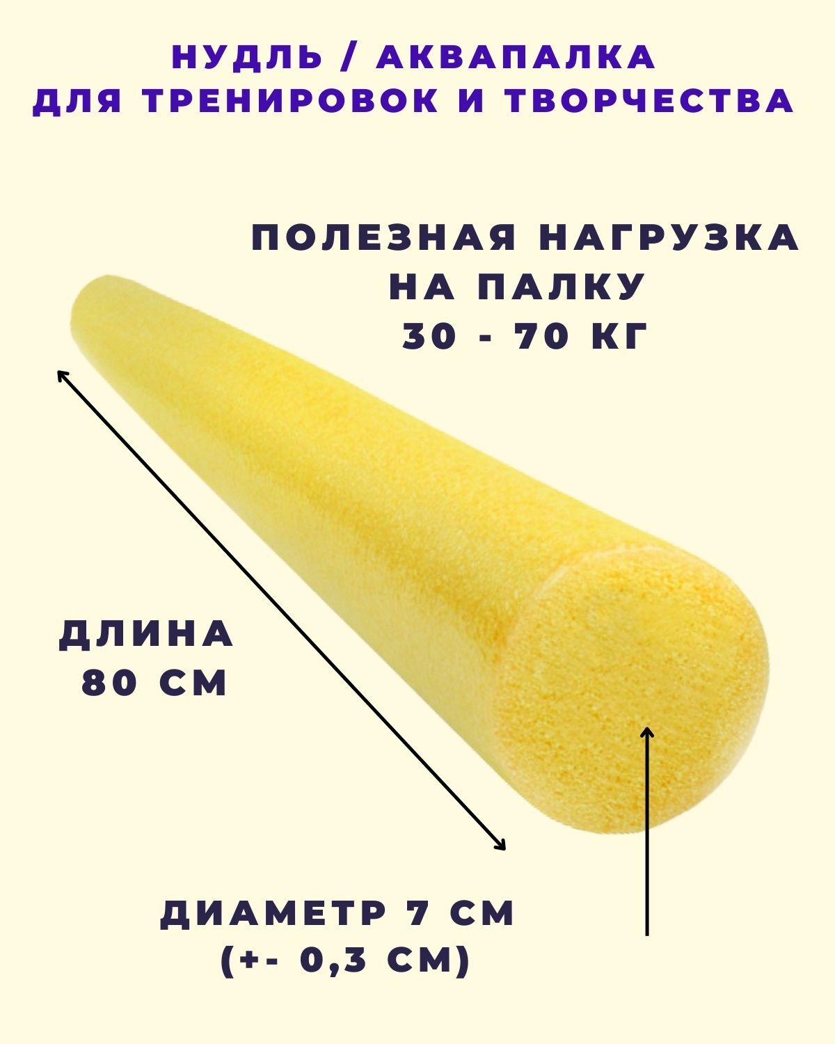 Аквапалка – спортивный аксессуар, который можно использовать в воде и на суше.Аквалапша компактного размера 80см, поэтому, с ней удобно учиться плавать, заниматься акваэробикой. Такой размер дает минимальную полезную нагрузку, для людей с физическими огра