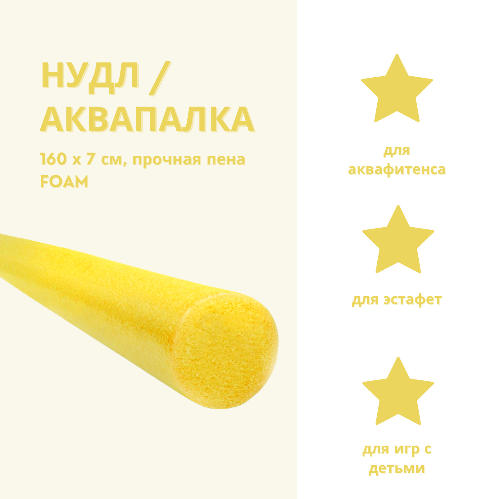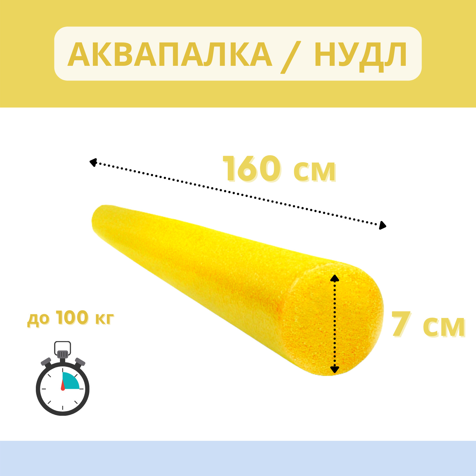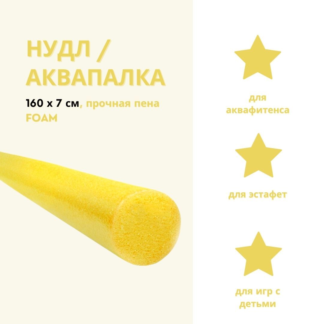 Аквапалка идеально подходит для обучения плаванию, тренировки силы и техники работы ног, дыхания, поддержки тела на воде во время тренировки мышц ног в аквааэробике, а также увеличению нагрузки на мышцы брюшного пресса. Нудл изготовлен из вспененного поли