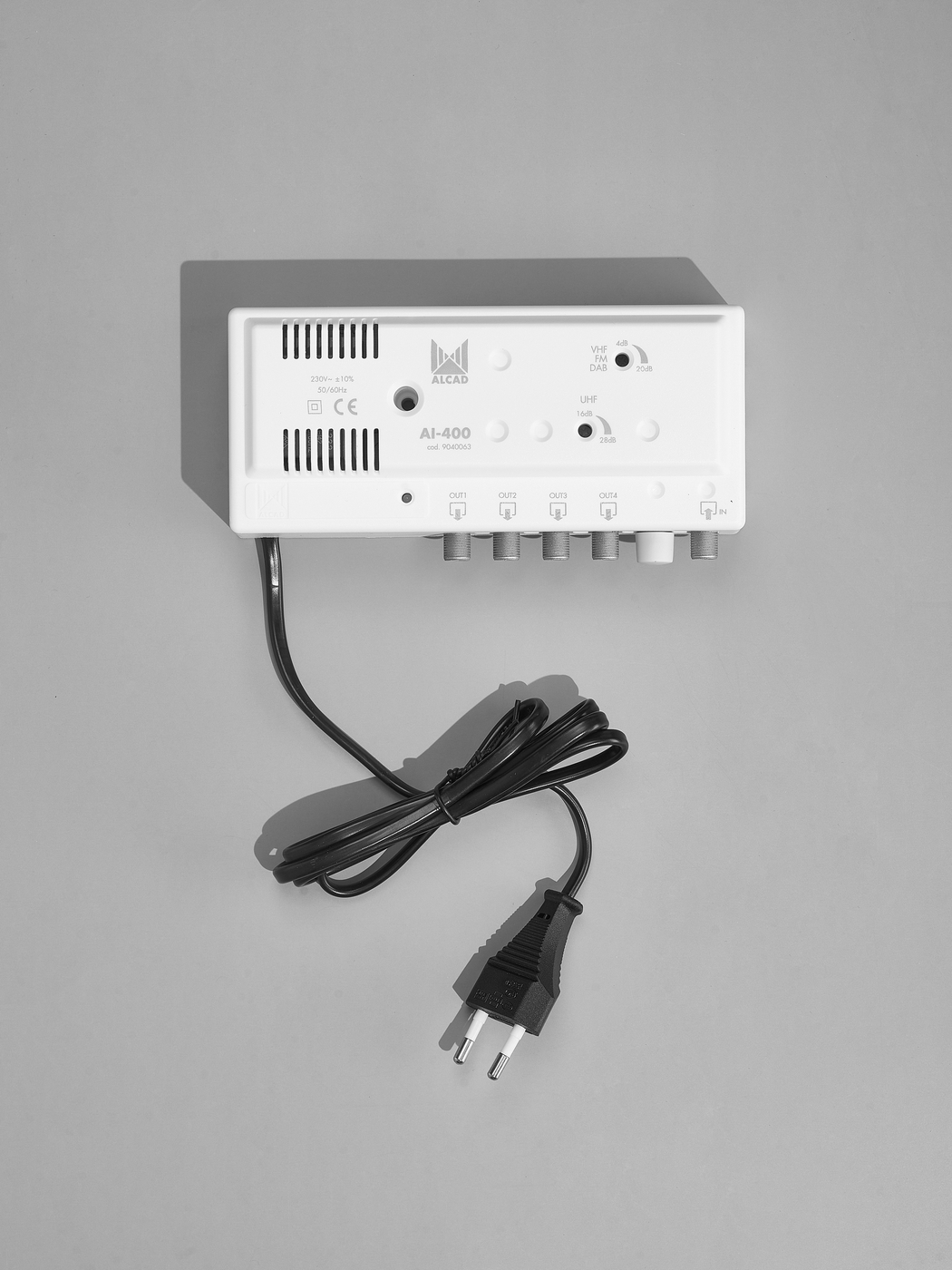 Характеристики:Технические характеристики Alcad AI-400: Рабочая частота: 40-862 МГцДиапазон рабочих частот: 40-318 / 470-862 МГц Усиление: не менее VHF (40-318 МГц) - 20 дБ, UHF (470-862 МГц) - 28 дБКоэффициент шума, не более: 4.2 дБ Максимальный выходно