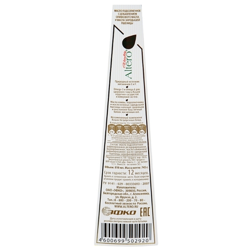 Составмасло подсолнечное рафинированное дезодорированное, вымороженное; масло оливковое рафинированное; масло зародышей пшеницы нерафинированное
