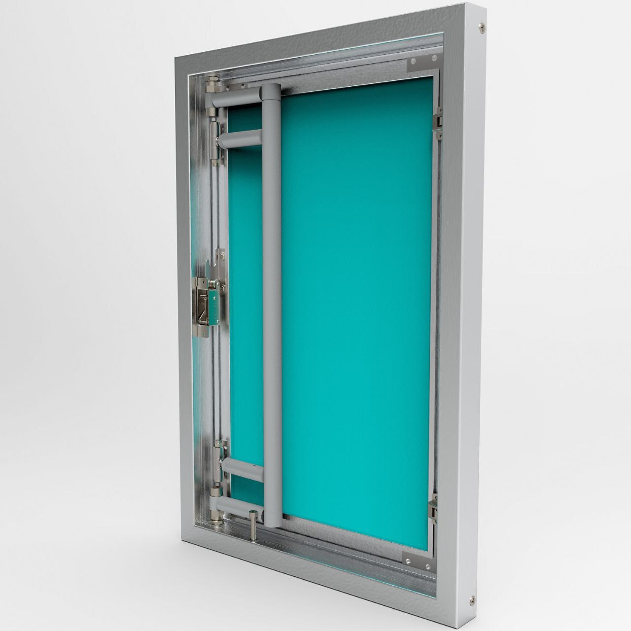 Размер дверцы 450*650*53.Особенности и преимущества модели АлюКлик Revizor100% невидимость люка. Благодаря фронтальной петле, плитка может выступать за пределы дверцы, обеспечивая при этом закрывание и открывание люка. Плитка может выходить за пределы две