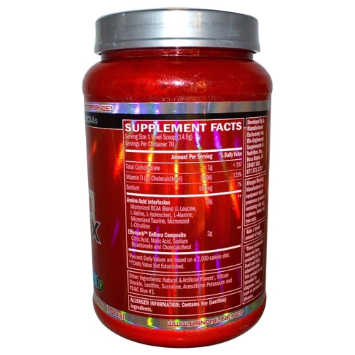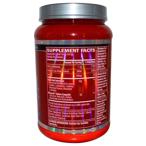 СоставL-лейцин (микронизованный), L-валин (микронизованный), L-изолейцин (микронизованный), L-аланин, таурин (микронизованный), L-цитруллин (микронизованный), яблочная кислота, лимонная кислота, натрий двууглекислый, холекальциферол, натуральные и искусственные