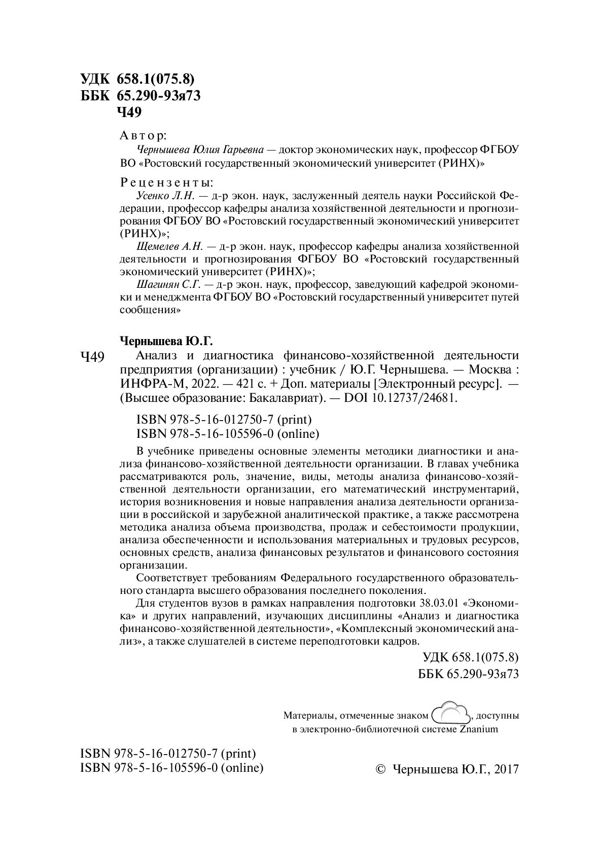В учебнике приведены основные элементы методики диагностики и анализа финансово-хозяйственной деятельности организации. В главах учебника рассматриваются роль, значение, виды, методы анализа финансово-хозяйственной деятельности организации, его математиче