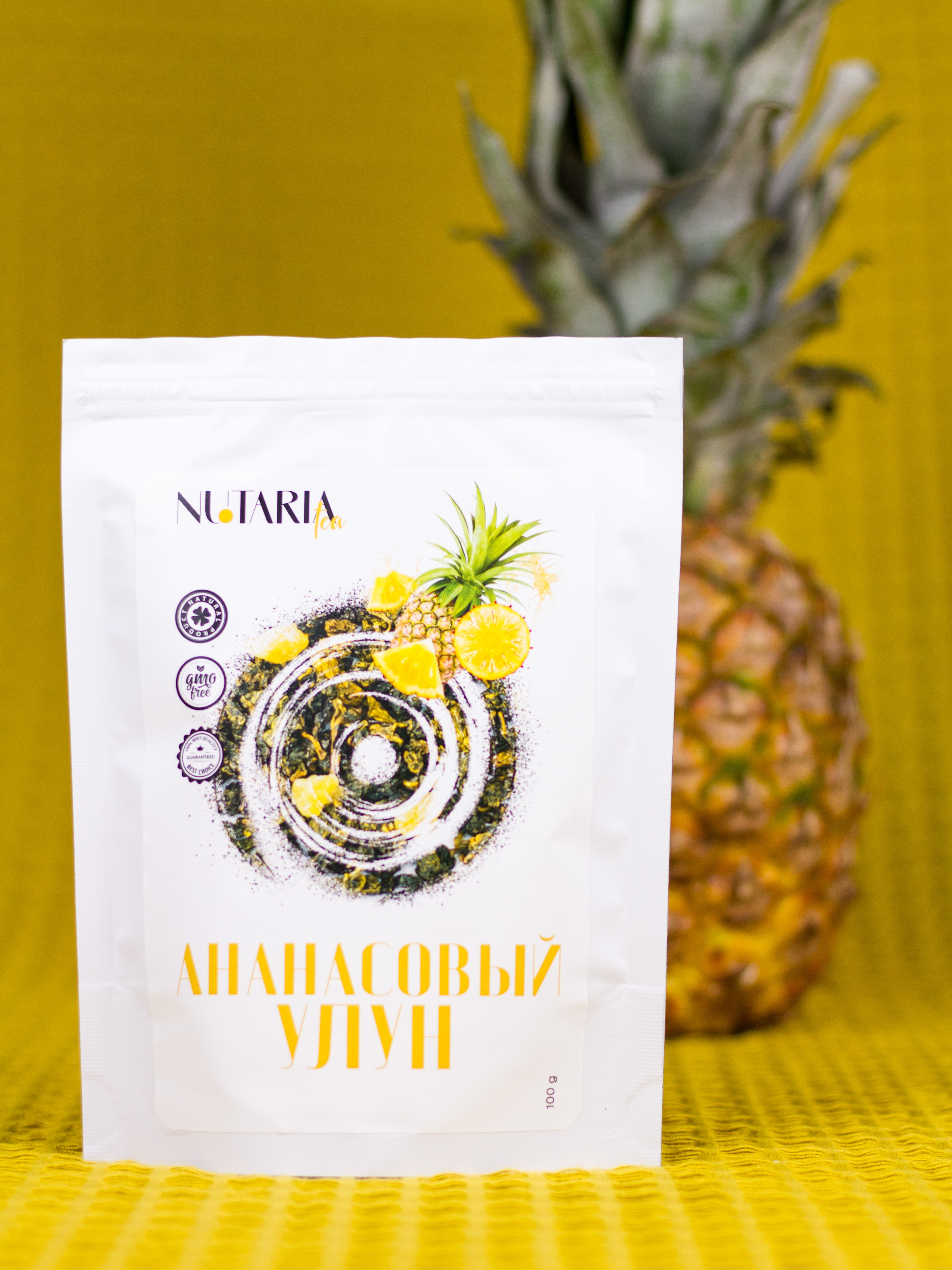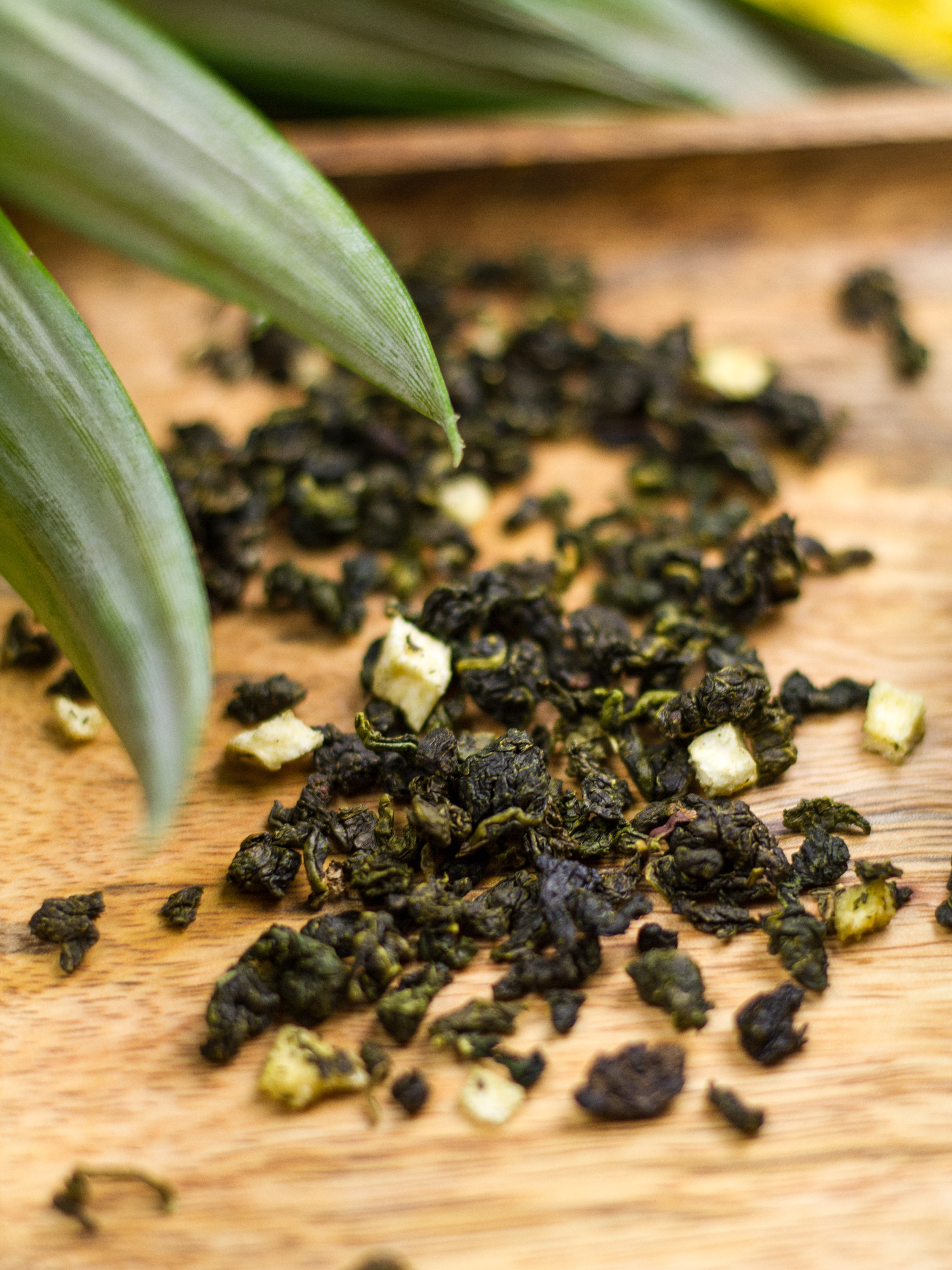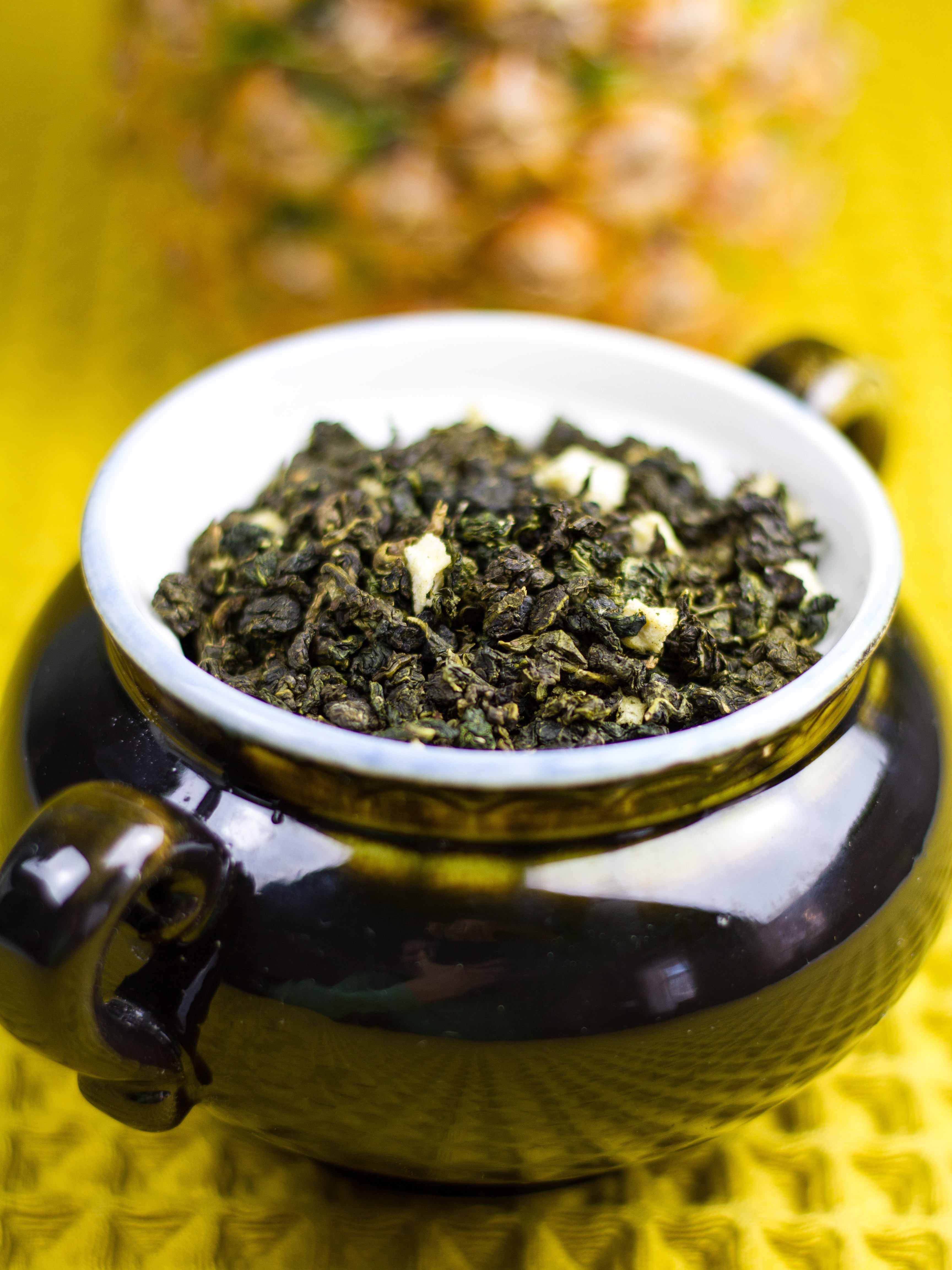 Ананасовый улун - это чай, способный подарить вам прекрасное настроение, снять раздражительность и усталость. Этот улун порадует вас своим необычным вкусом и ароматом. Чай сочетает в себе нежные листочки китайского светлого улуна и цукаты ананаса. Аромат