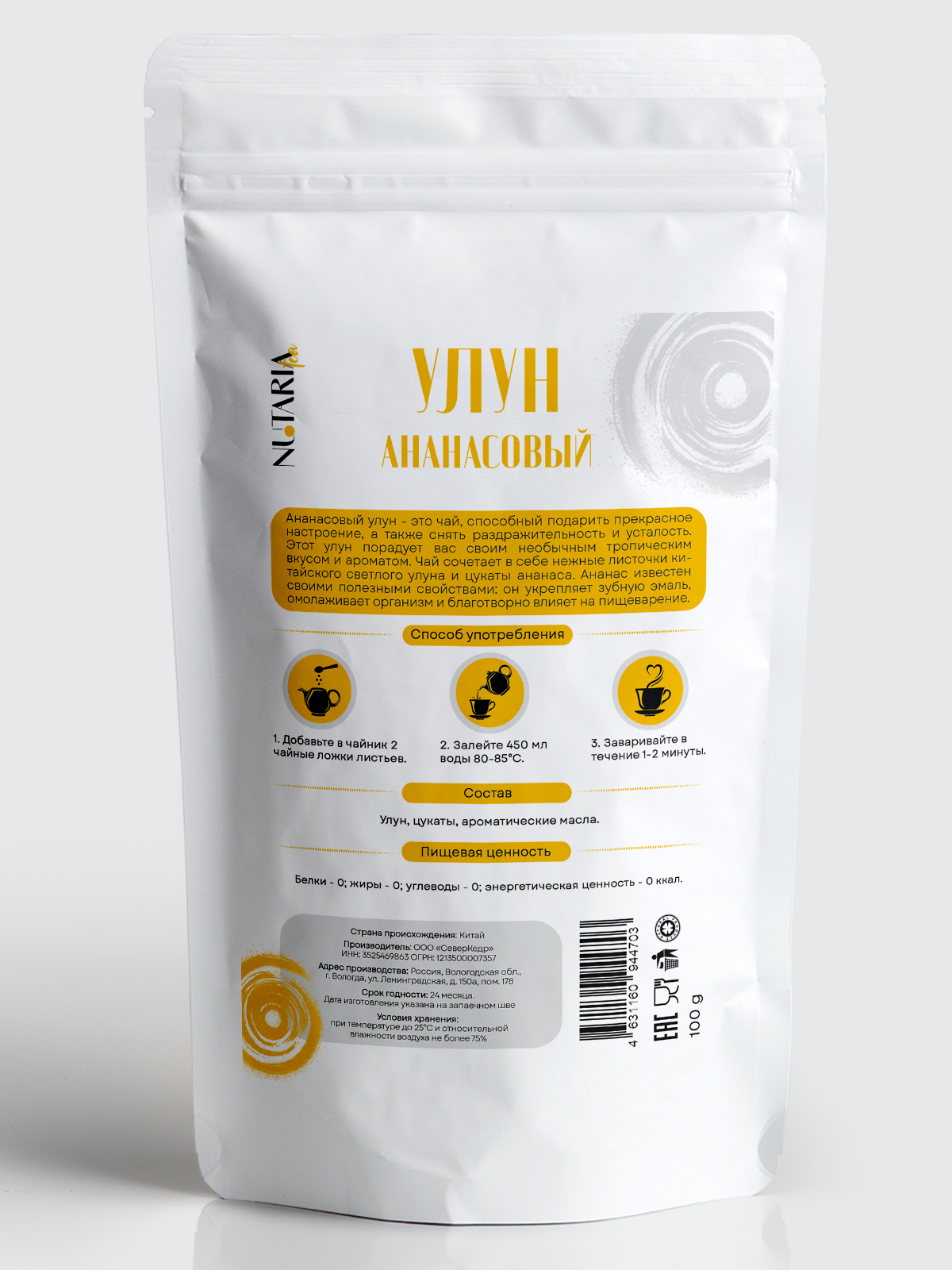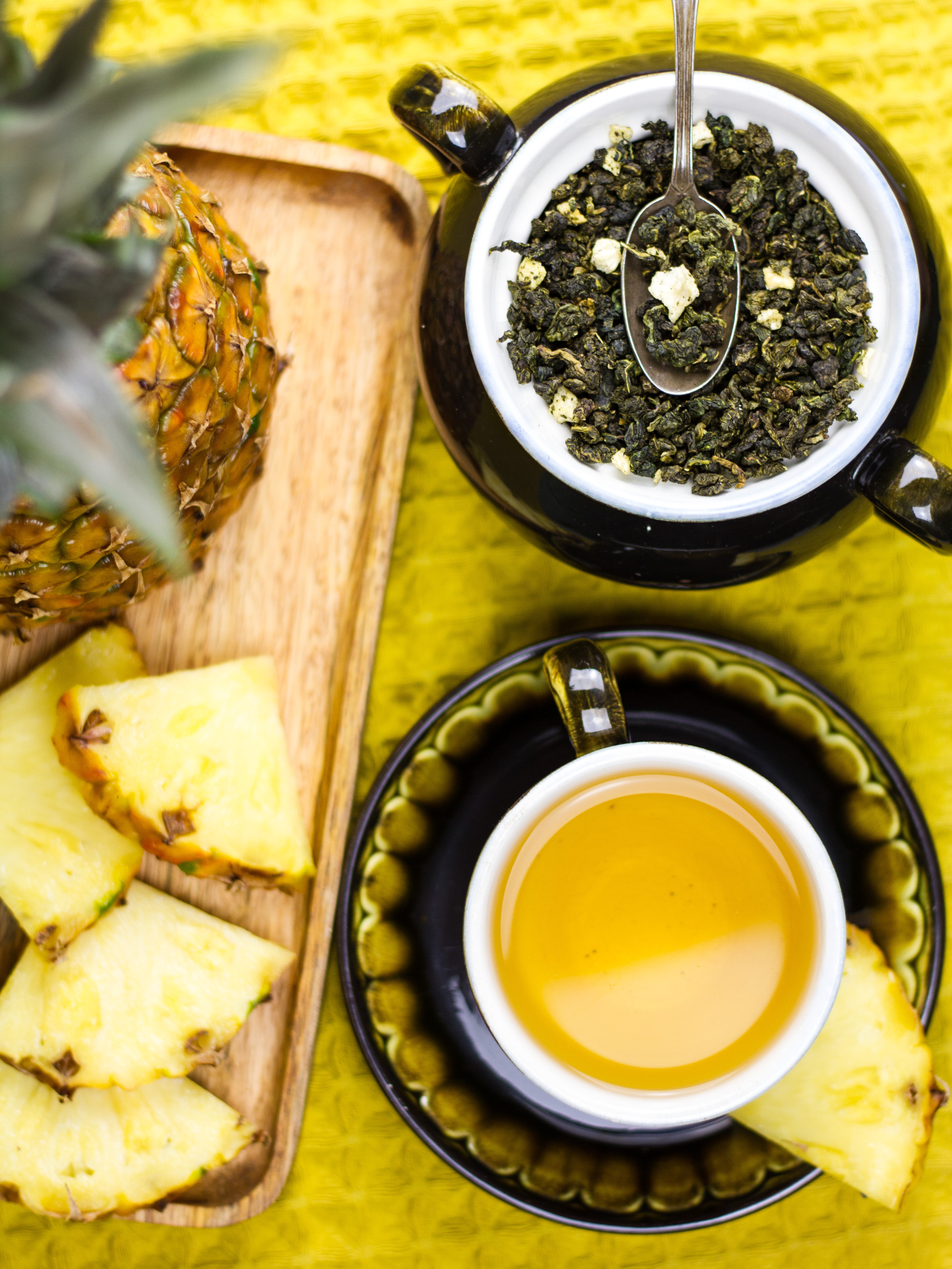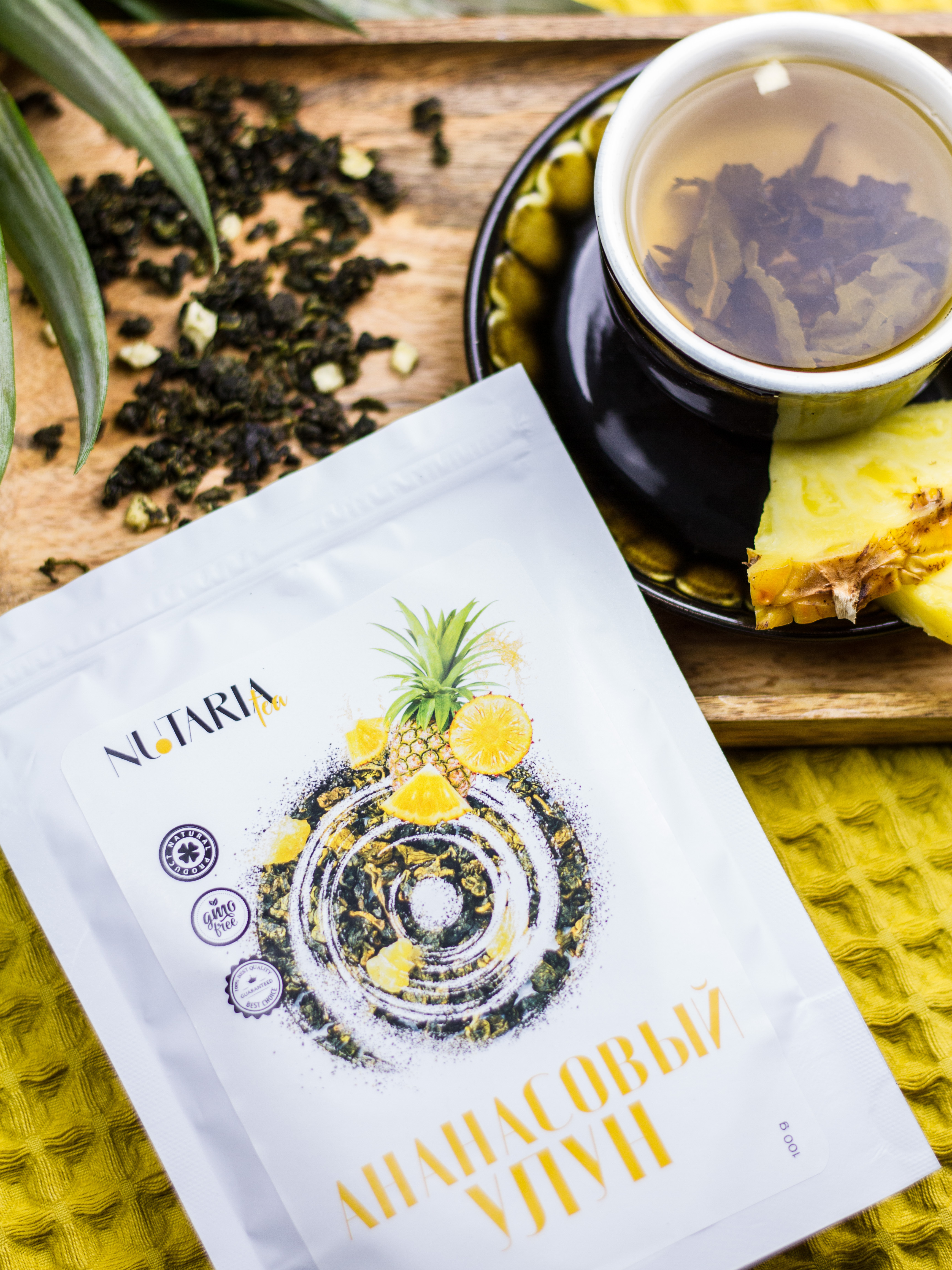 Ананасовый улун - это чай, способный подарить вам прекрасное настроение, снять раздражительность и усталость. Этот улун порадует вас своим необычным вкусом и ароматом. Чай сочетает в себе нежные листочки китайского светлого улуна и цукаты ананаса. Аромат