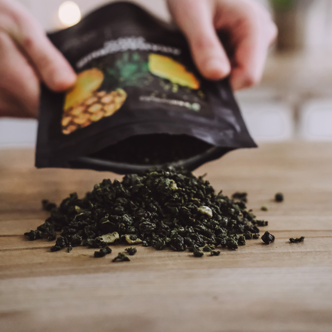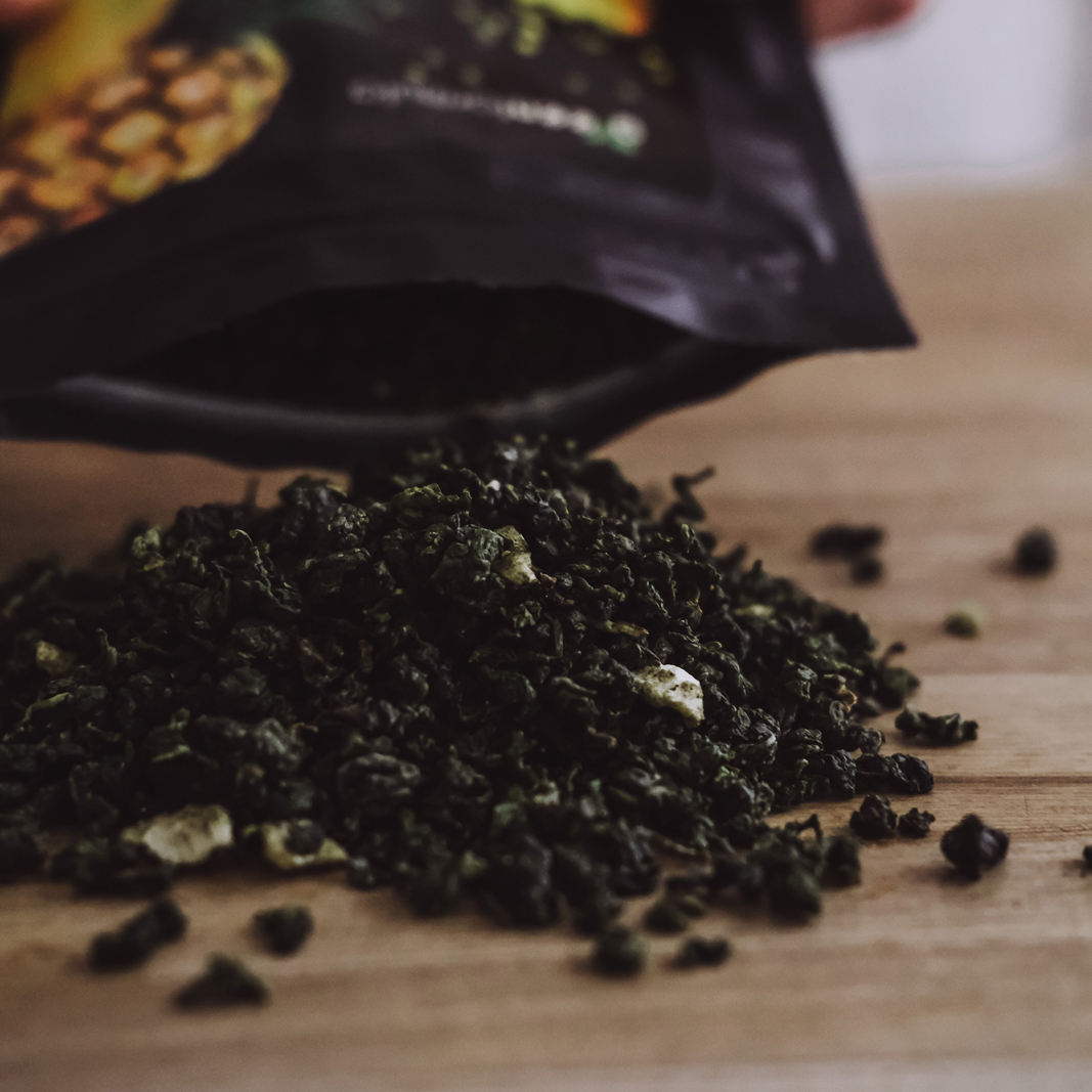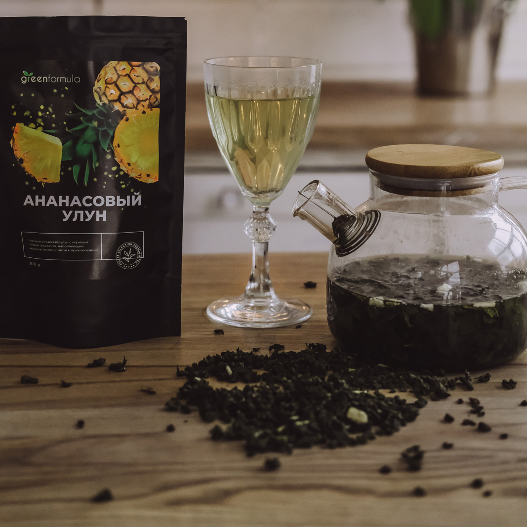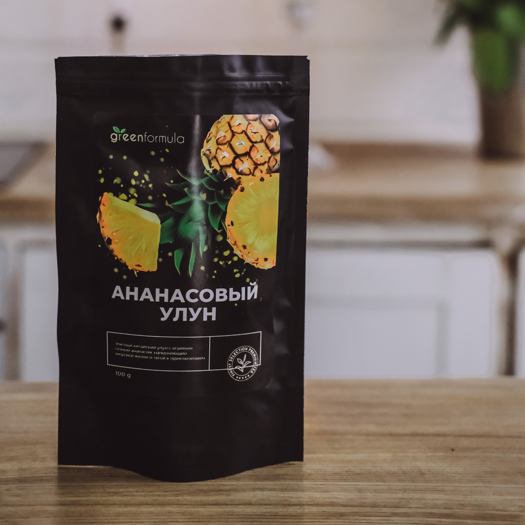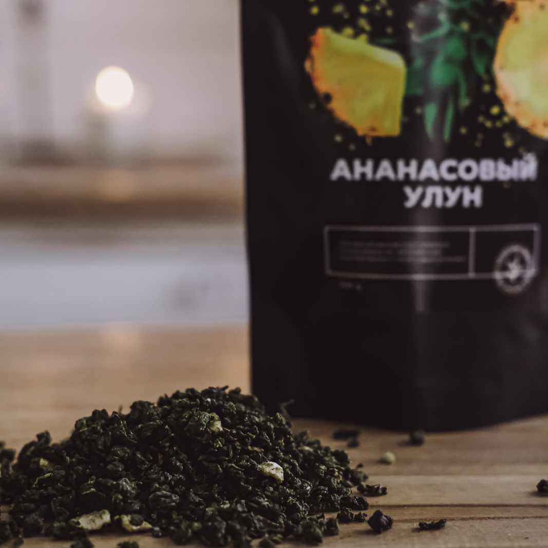 Ананасовый улун (оолонг) - это великолепный китайский чай с добавлением ананаса. Это прекрасное сочетание нежности и изысканности. Готовый отвар этого удивительного чая подарит ощущение тепла, солнца и лета. Чай имеет нежный аромат ананаса и освежающий вк