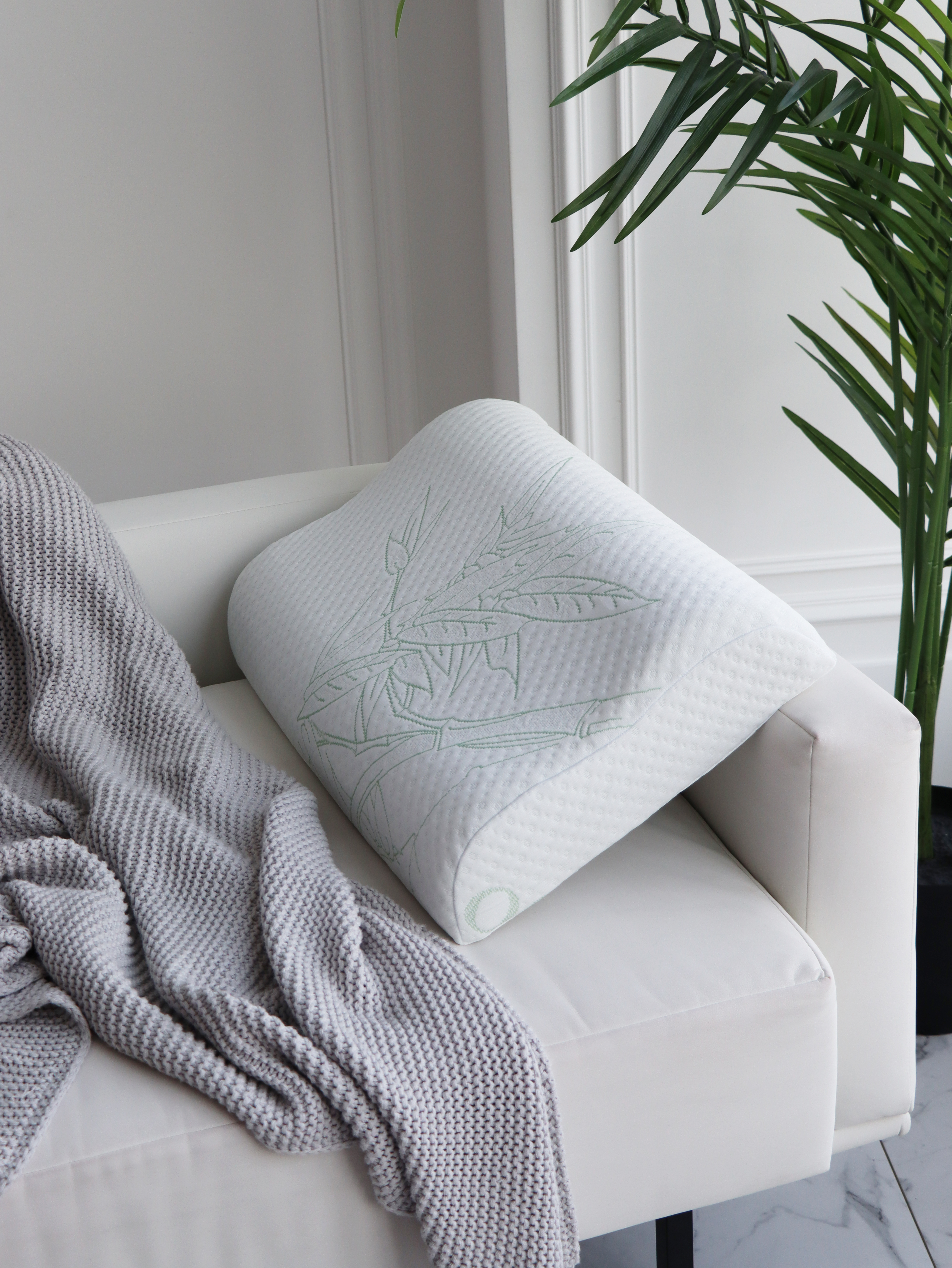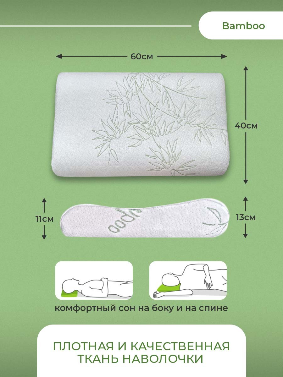 Подушка ортопедическая форма “волна” с волокнами бамбука. Эргономическая форма.Идеально подходит людям со слабым иммунитетом.Обладает бактерицидными свойствами.Снимает стресс.Предотвращает появления отеков на лице.Не впитывает пыль.Благодаря инновационной