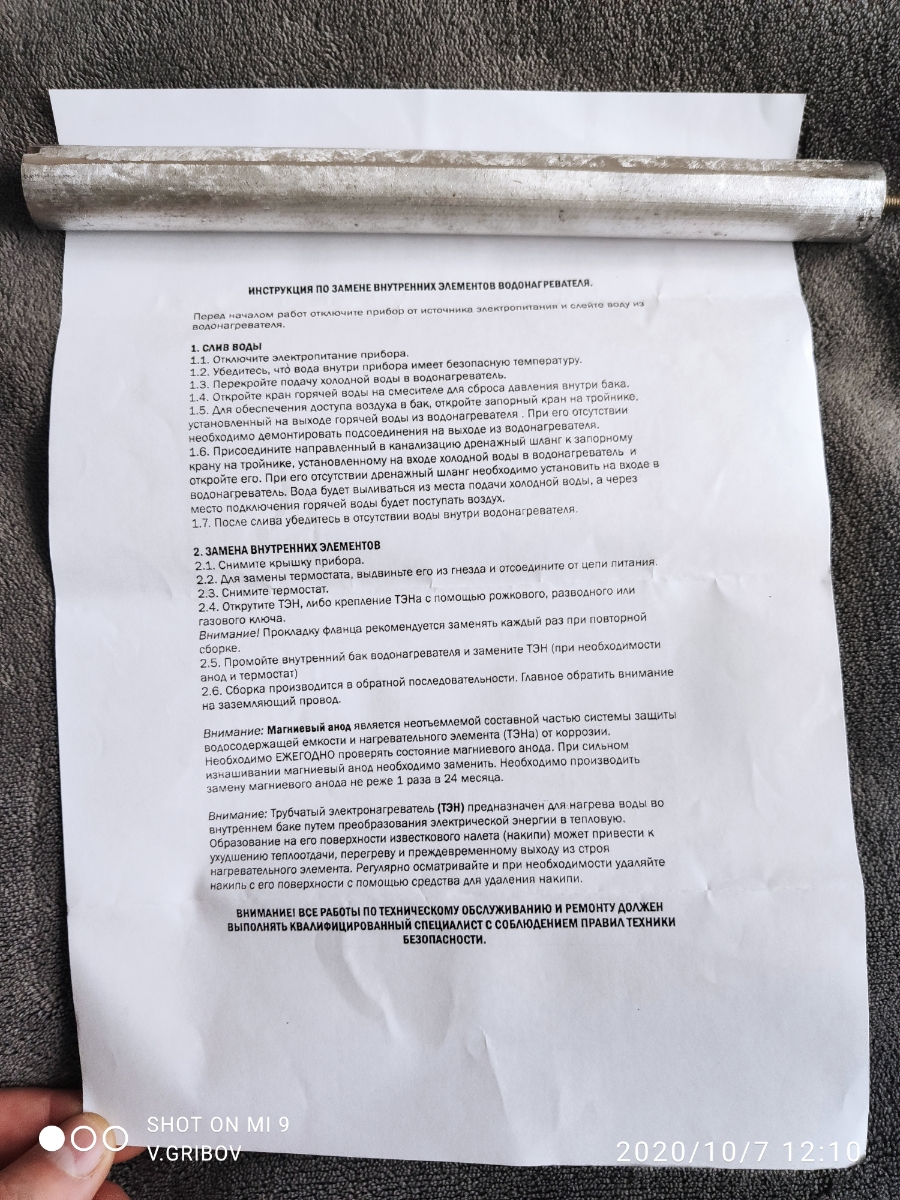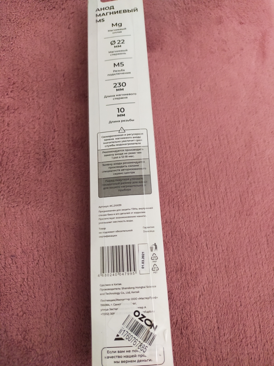 Применяется для использования с ТЭНами в системах нагрева воды.Магниевый анод — это толстый стержень из сплава магния, алюминия и еще нескольких металлов, установленный внутри емкости бойлера. Чаще всего его крепят рядом с нагревательным элементом на одно