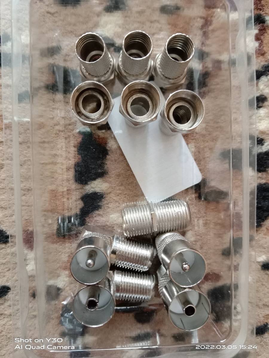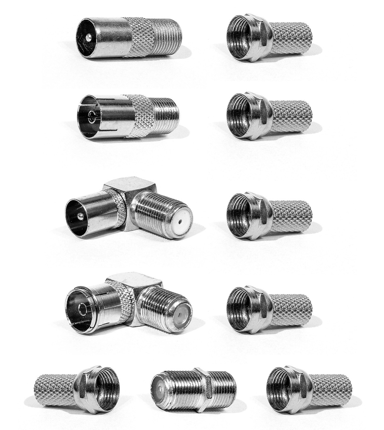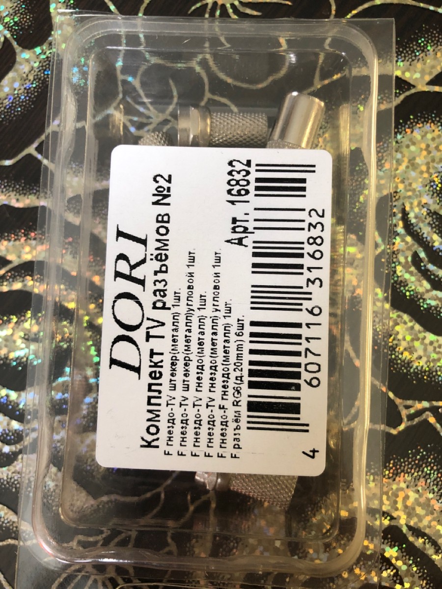 Комплектация:Переходник DORI (F-гнездо-TV-штекер) (металл) - 1 шт., переходник DORI (F-гнездо-TV-штекер) угловой (металл) - 1 шт., переходник DORI (F-гнездо-TV-гнездо) (металл) - 1 шт., переходник DORI (F-гнездо-TV-гнездо) угловой (металл) - 1 шт., перехо