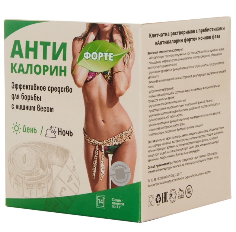 Антикалорин форте клетчатка растворимая с пробиотиками, 14 саше/4 гр, Сашера-Мед
