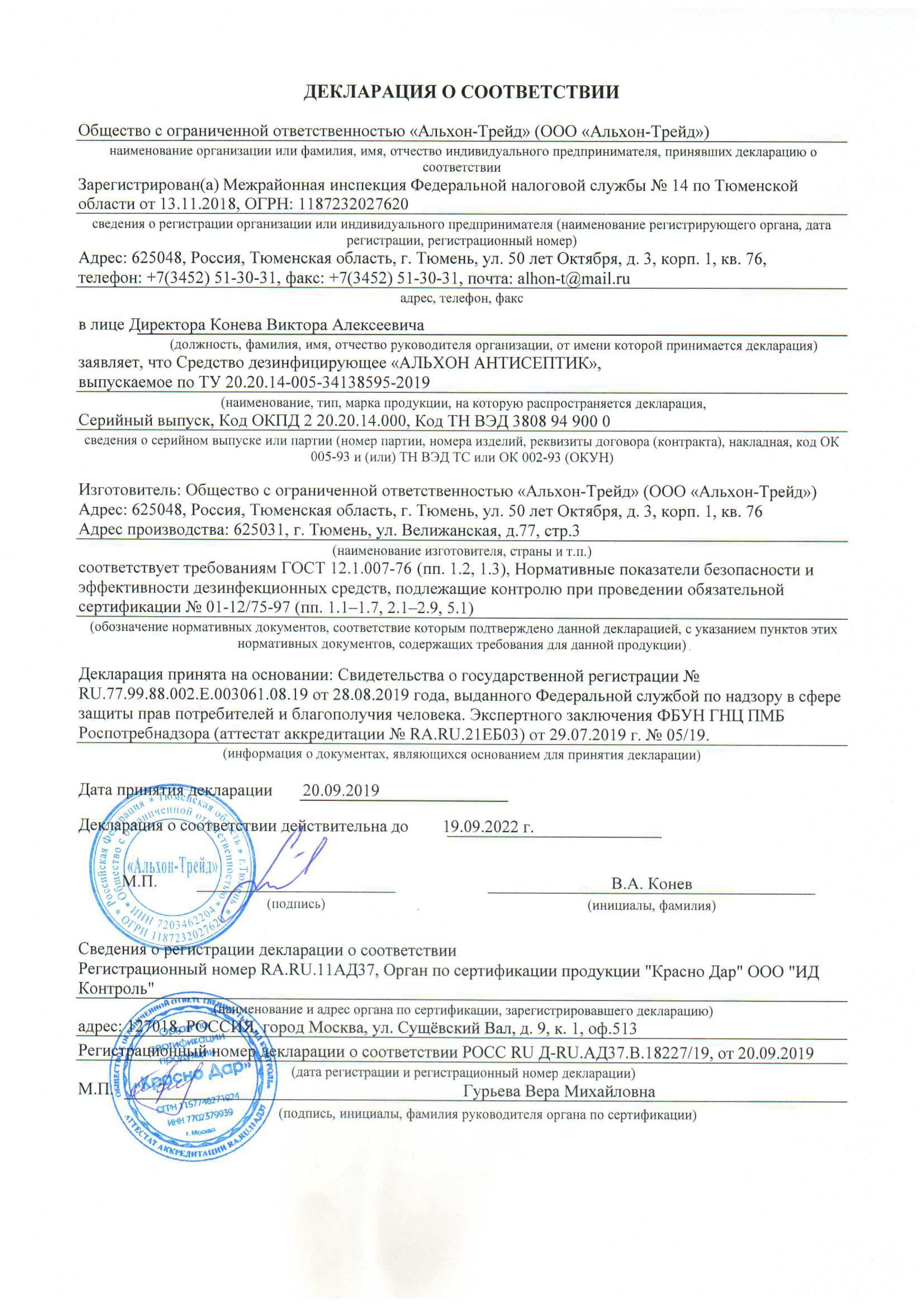 Дезинфицирующее антибактериальное средство для рук и поверхностей.Представляет собой готовый к применению раствор в виде прозрачной жидкости. В качестве действующих веществ содержит спирт изопропиловый - 71% и другие компоненты, включая функциональные