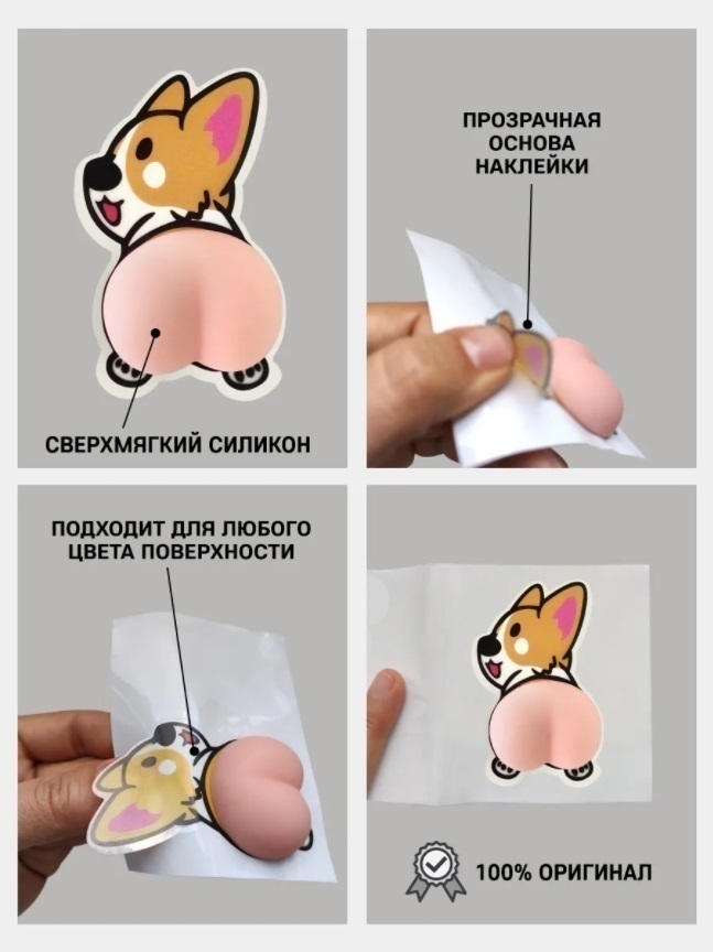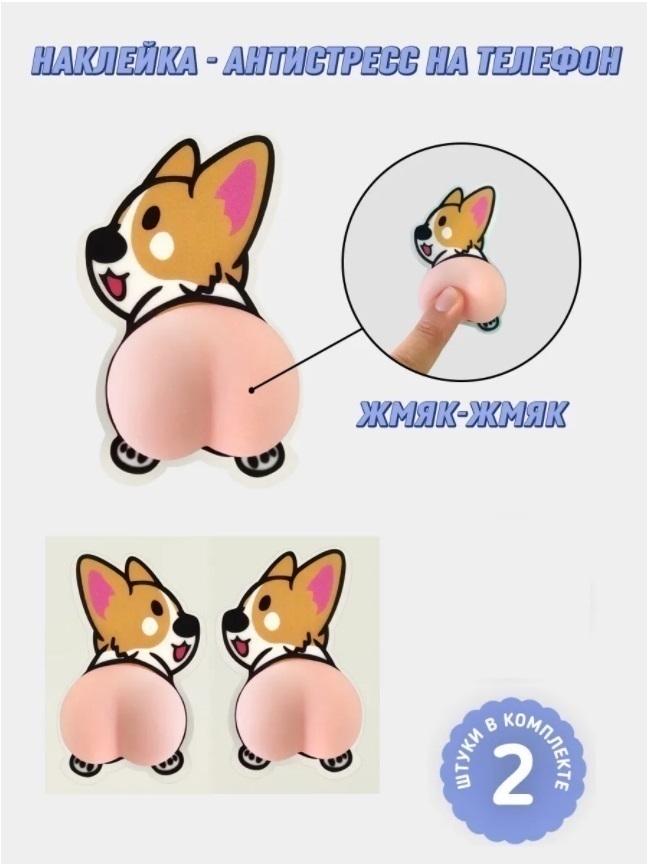 Яркая тактильная наклейка антистресс. Состоит из полусфер "попа", которые изготовлены из силикона и крепкого пластика. Попка проваливается при нажатии внутрь и наоборот. Этот процесс не только успокаивает и завлекает, а еще и развивает мелкую моторику с п