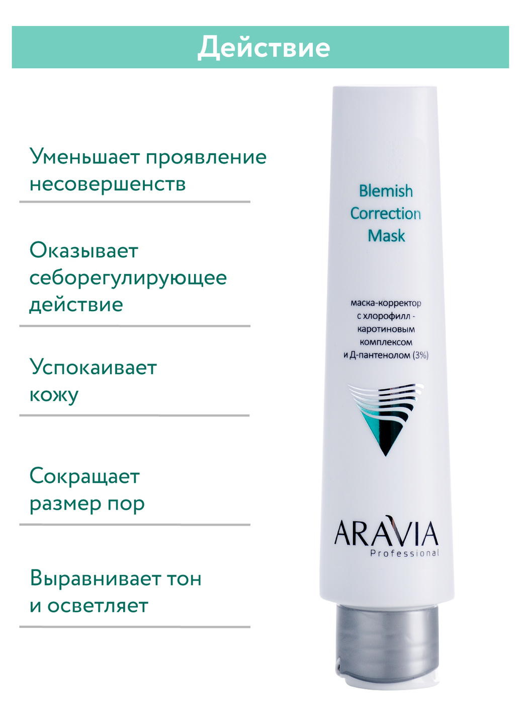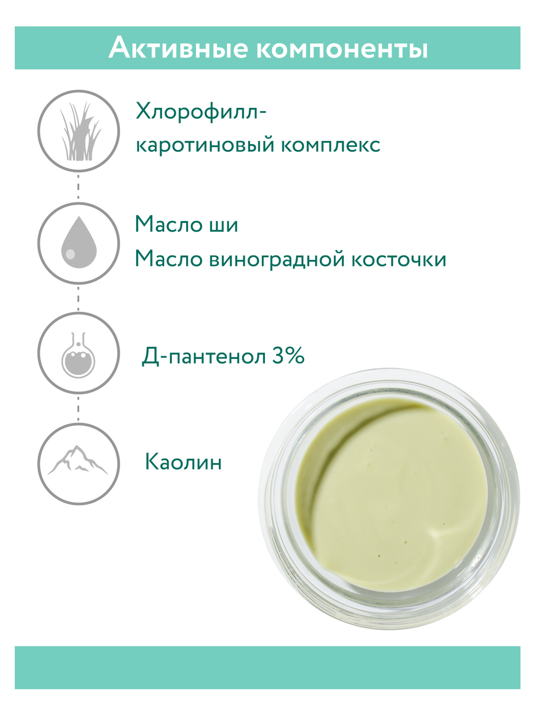Корректирующая маска для проблемной и жирной кожи с выраженным успокаивающим на воспалительные элементы действием. Хлорофилл-каротиновый комплекс оказывает выраженное бактерицидное и иммуномодулирующее действие, препятствует росту патогенной микрофлоры, т