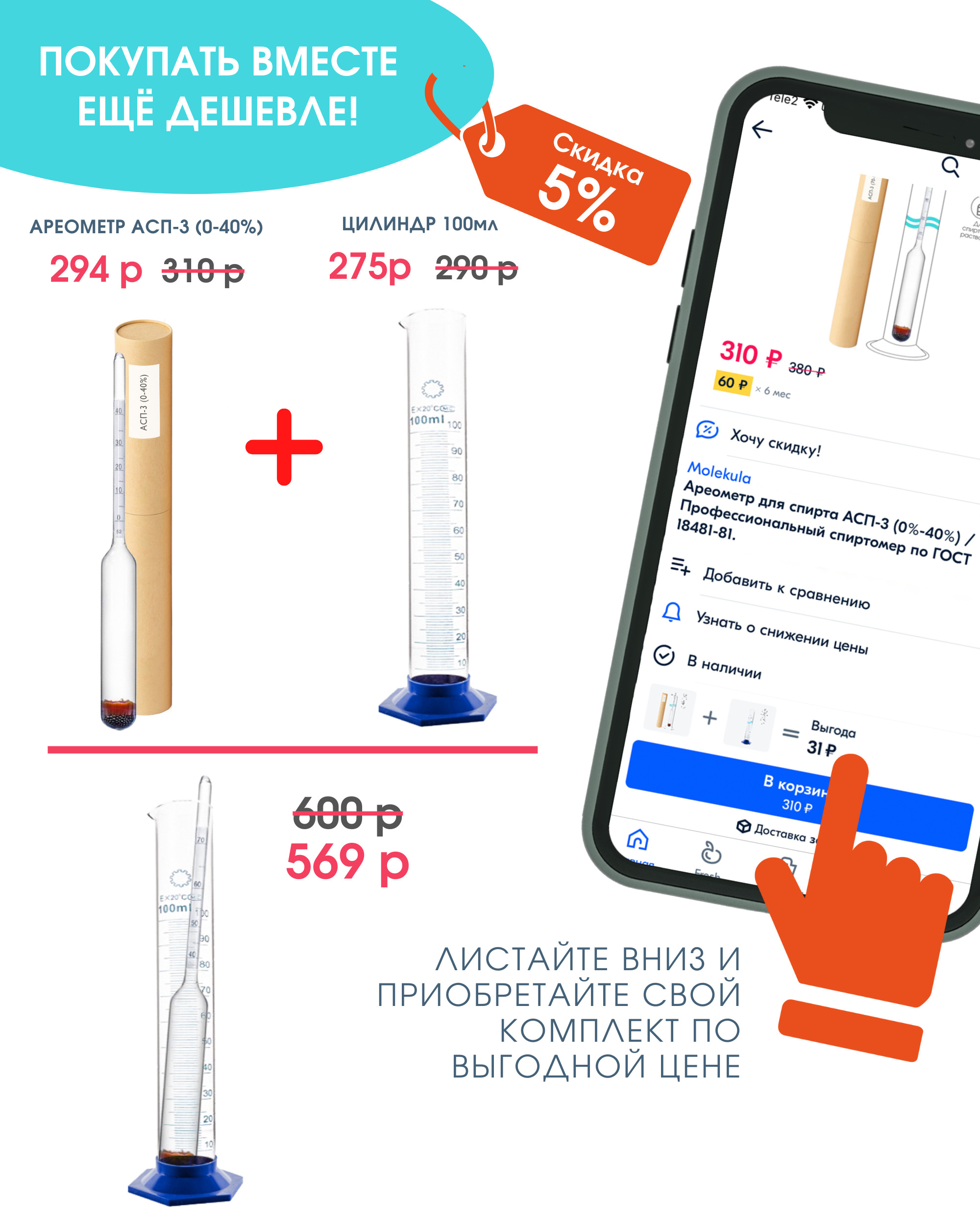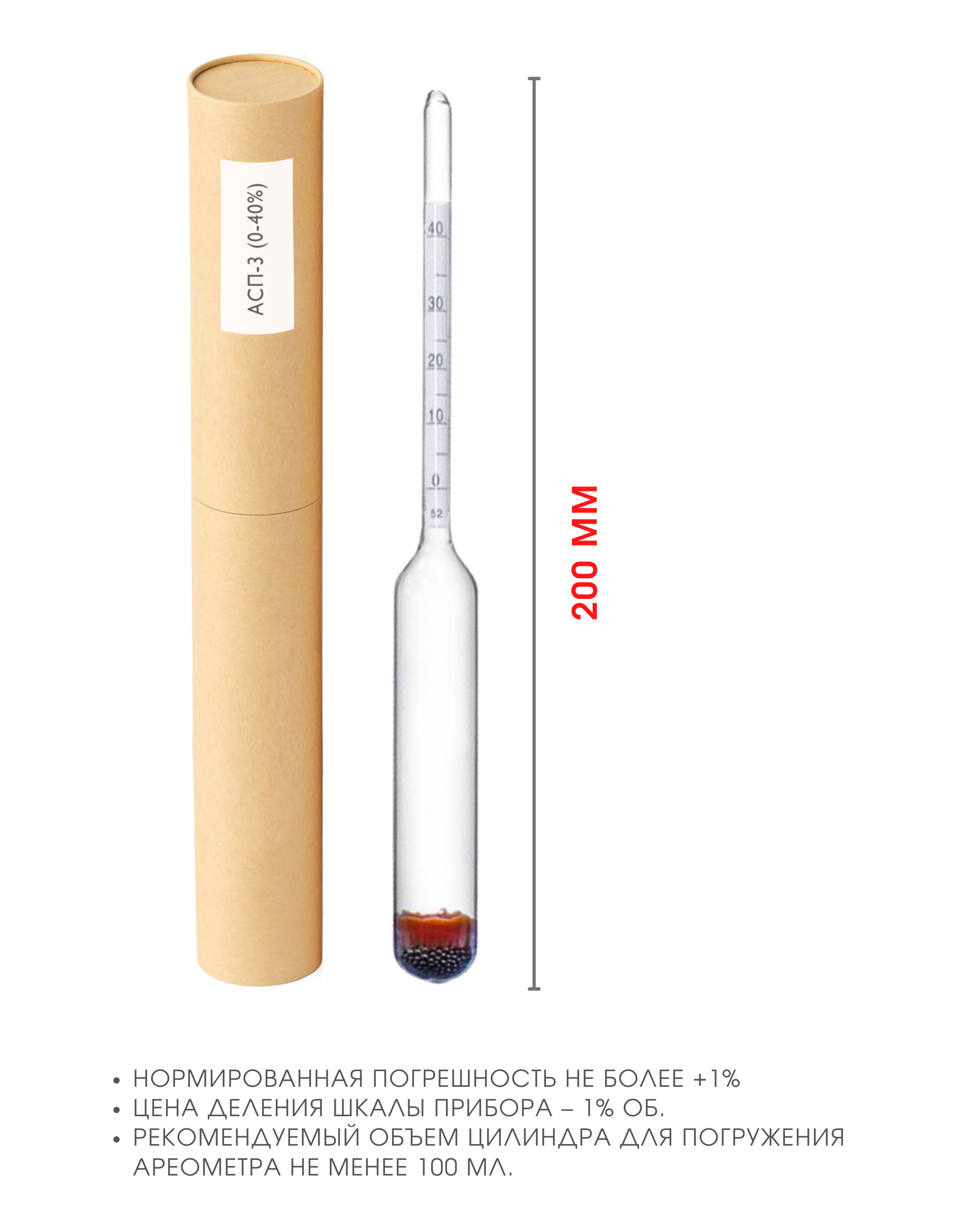 Ареометр АСП-3 - это профессиональный спиртомер для определения крепости (объёмной доли) этилового спирта в водных растворах.Ареометр это простой инструмент, незаменимый в самогоноварении, позволяющий получить показания крепости напитка в домашних условия