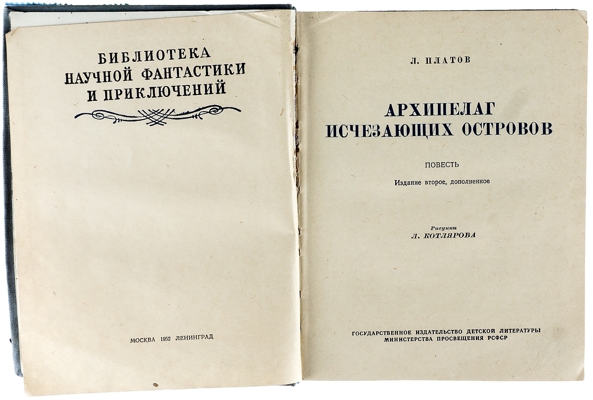 Москва-Ленинград, 1952 год. Государственное издательство детской литературы.Издательский переплет. Сохранность хорошая. С рисунками Л. Котлярова.Издание второе, дополненное.В книгу входит дилогия Леонида Платова "Архипелаг исчезающих островов" (1949), в к
