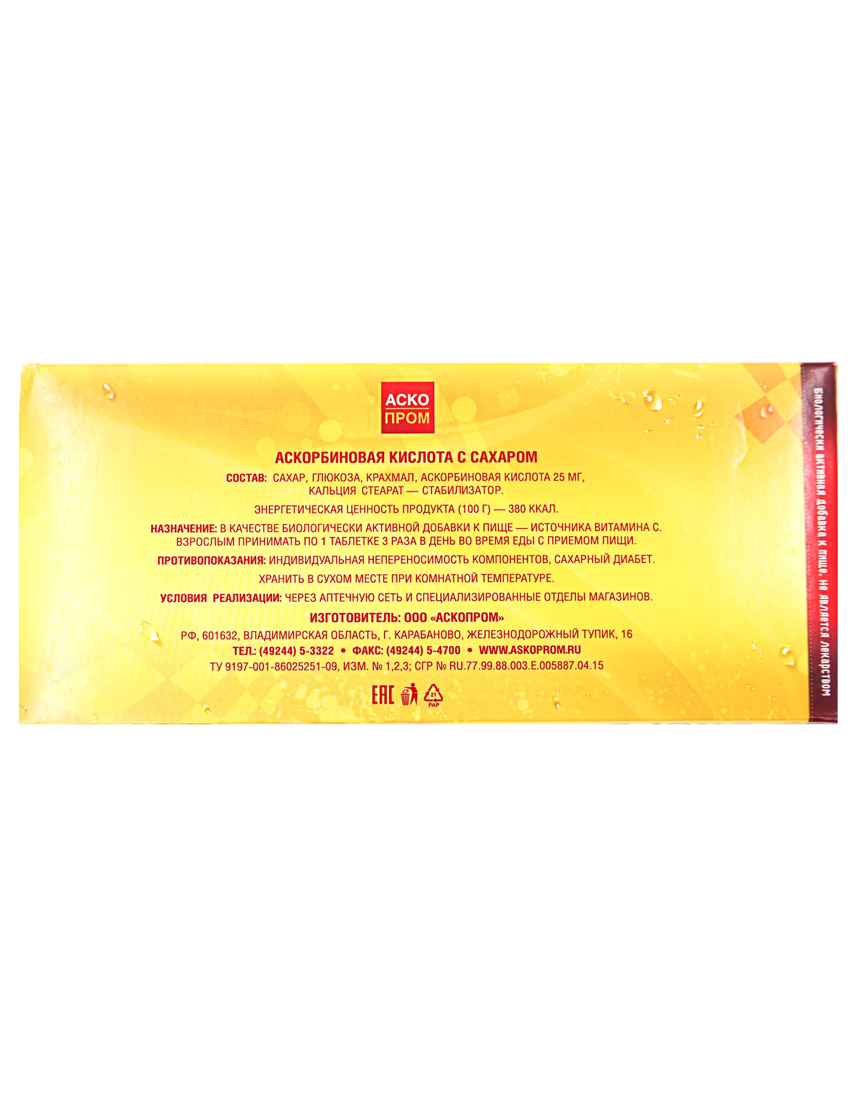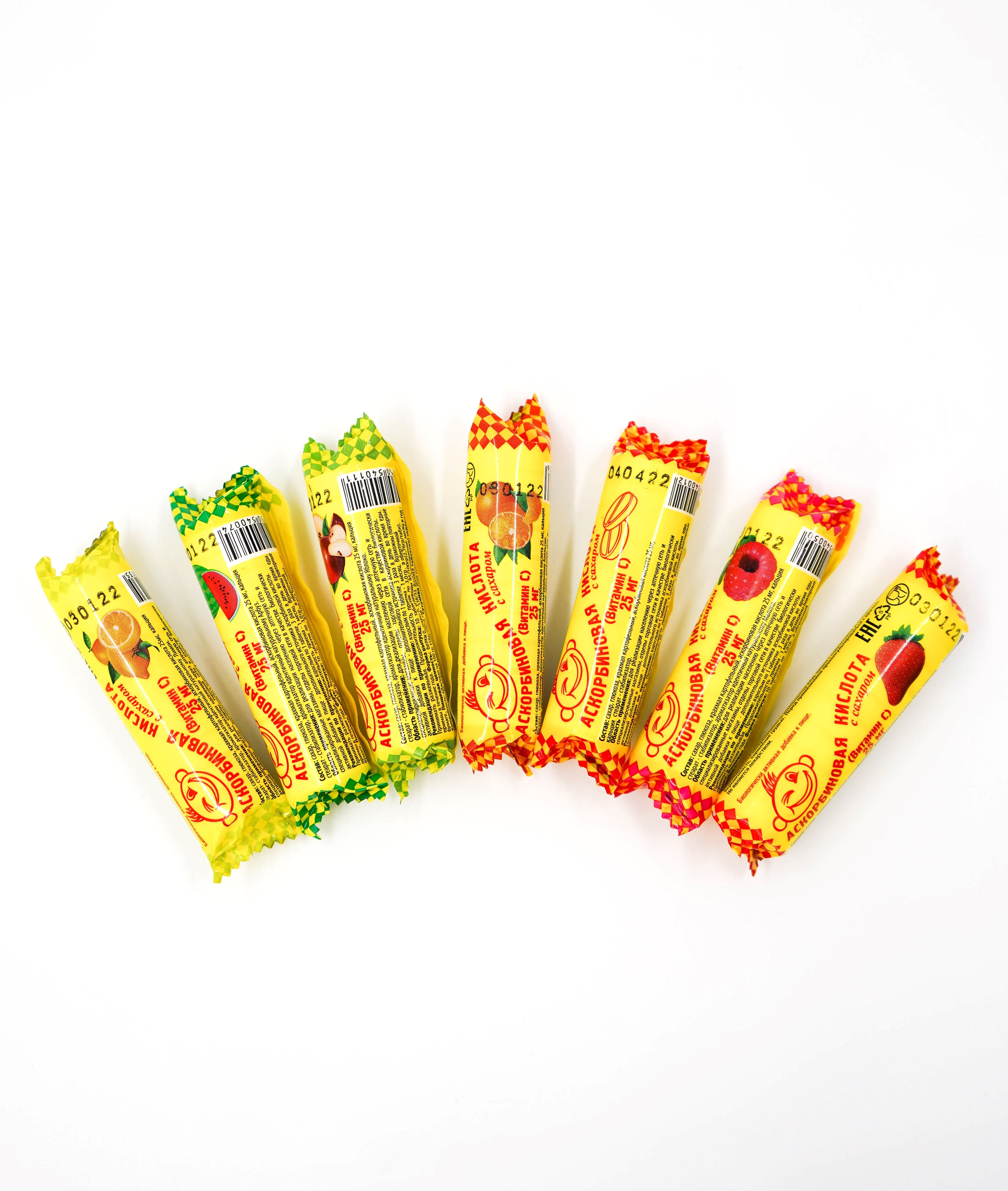 Состав:Сахар, глюкоза, крахмал картофельный, аскорбиновая кислота 25 мг., кальция стеарат – стабилизатор, ароматизатор идентичный натуральному - МалинаОписание:Продукция от производителя! Вкус, знакомый всем с детства! Классическая рецептура! Аскорбиновая