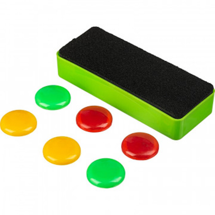 Набор для магнитно-маркерных досок Attache состоит из: губки-стирателя, 6 магнитных держателей. Губка предназначена для стирания маркеров с магнитно-маркерных досок сухим способом. Оснащена магнитной пластиной для крепления к доске. Размер губки: 123x48 м