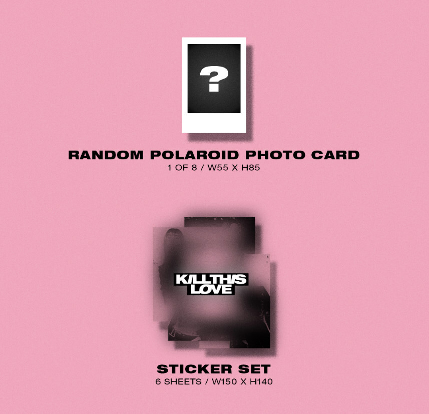 Комментарий:DescriptionType: BLACKPINK Kill This LoveVersion: Pink ver.Out Box: 160 x 211 x 20mmPhotobook: 52 pages, 150 x 200mmPhoto zine: 16 pages, 150 x 60mmAccordion Lyrics Book: 10 pages, 100 x 150mmDics: 1eaPhotocard: Random 4ea (4 of 16), 70 x 90mm