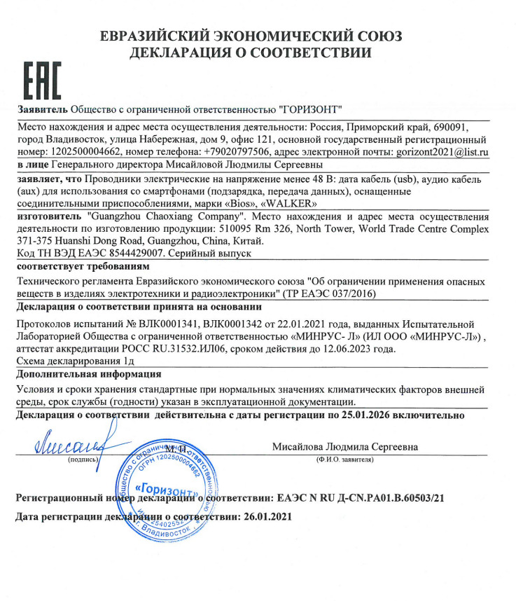 Акустический кабель для телефона AU